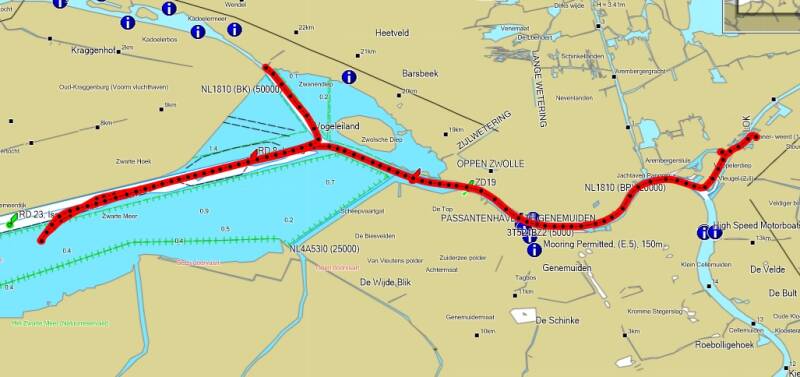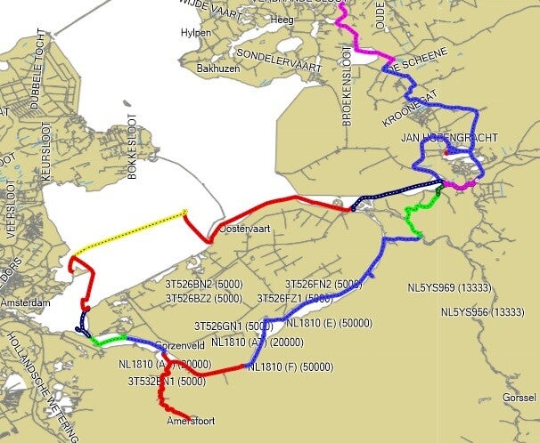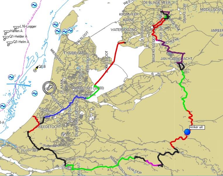 Nieuwe route gevaren om de roerige Stortemelk te ontwijken bij windkracht 5 uit het noorden.