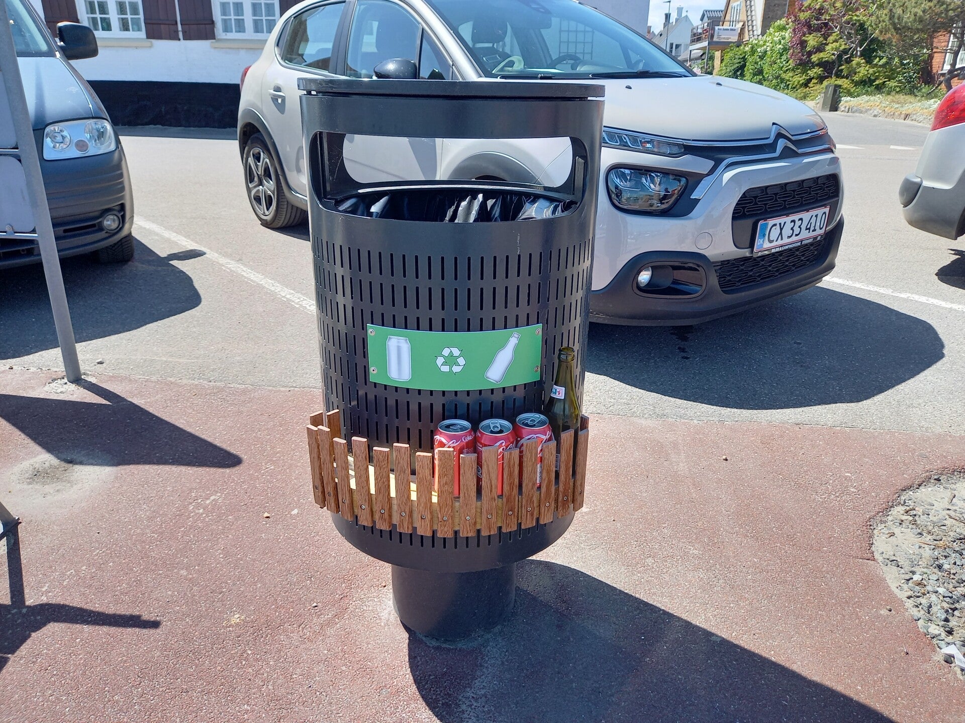 Een vuilnisbak langs de weg waar je apart blikjes/flessen met statie geld in een rekje kunt zetten. De liefhebber kan het dan makkelijk meenemen en inleveren voor statie geld.