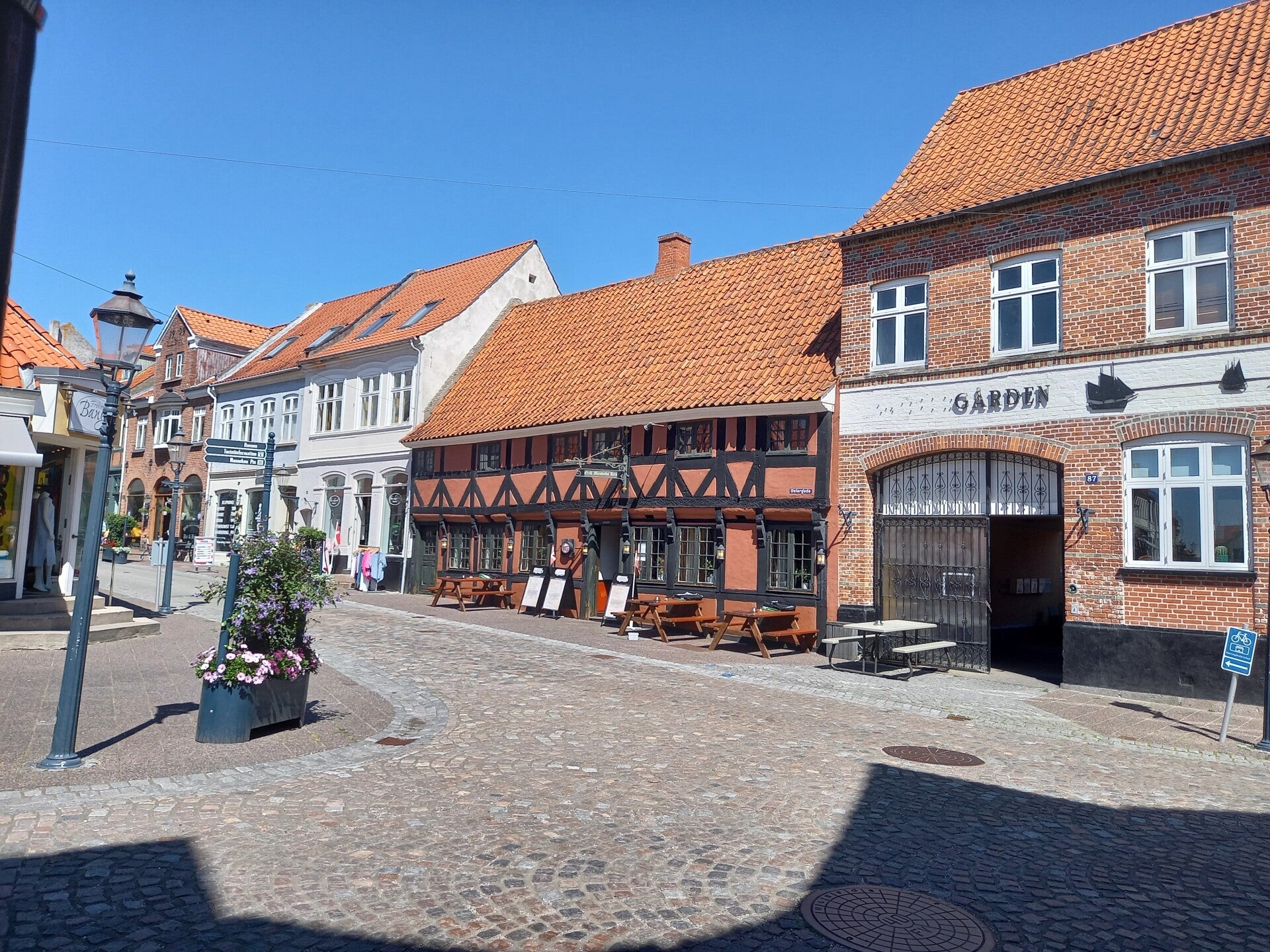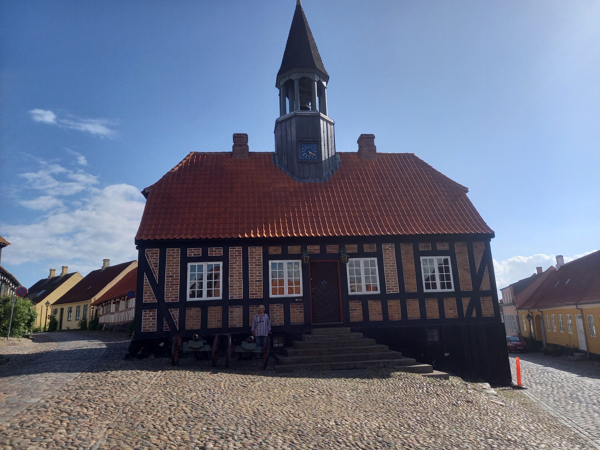 Wij zijn om 04.00 uur vertrokken van onze ankerboei in de Mariager fjord en hadden de stroom 3 km mee naar zee. Onderweg zaten er 15 zeehonden van verschillende grote op een zandplaat en totaal niet bang voor ons. Er is voor de komende dagen veel wind voorspeld in de regio rond Grenaa. De zee bij Grenaa staat ook bekent als een ruw gebied dus wij hadden zoiets als laten we hier met goed weer maar doorheen varen. De zee bij Grenaa was best wel warrig ondanks dat we met weinig wind aan hoger wal voeren. Om 16.00 uur zijn we in het middeleeuwse stadje Ebeltoft aangekomen in de gasten haven. Er waren nog 3 Nederlandse boten. Wij hadden via geocaching een paar leuke opdrachten in deze mooie oude stad en zo kwamen we op de mooie oude plekken waaronder het oudste stadshuis terecht. Dit was een mooie wandeling met een heerlijk weertje.