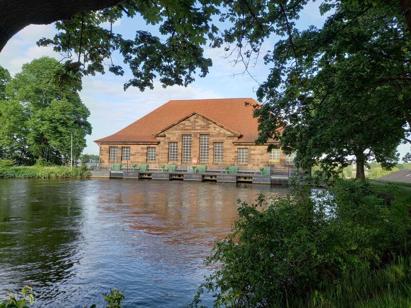 Waterkruispunt Minden met het gemaal dat water uit de Elbe pompt naar het Mittellandkanal