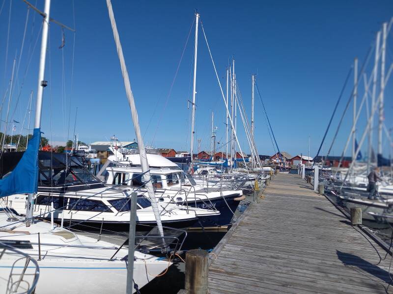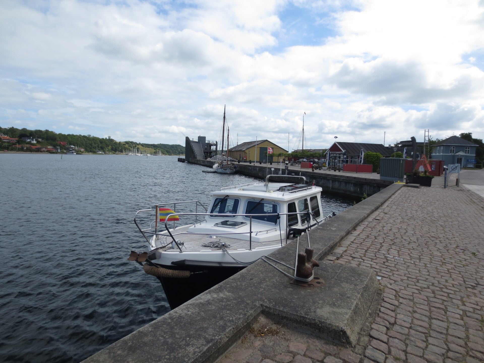 Om 08.00 uur vertrokken uit Grossenbrode. Onder de Fehmarnsundbrücke hadden we 3 km stroom tegen. De wind werd steeds minder maar de golven waren er nog. Op ¾ van de oversteek was behoorlijk hobbelig. Het laatste stukje werd het rustig. Aangemeerd in Marstal. Allemaal zeiljachten 99% Duits. Wat wel opvalt is dat zowel BB als SB geen zeiljacht naast ons ligt. Waarschijnlijk zijn de zeiljachten allergisch voor motorboten. Marstal is een mooie haven waar er veel gelegenheid is voor BBQ ed. Dus met dit mooie weer is het een gezellige boel.