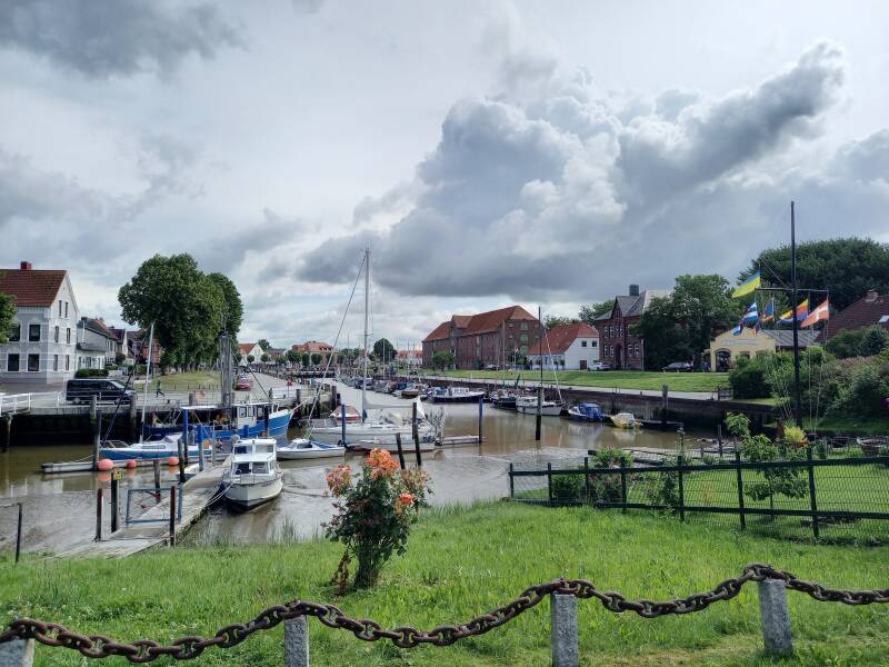 De nieuwe sluis in Otterndorf wordt officieel maandag de 11e juli geopend en zal dan onder voorbehoud 12 juli gaan draaien voor de sportboten. Een aantal mensen die we hebben gesproken en ook ons contact met de havenmeester in Otterndorf zijn onzeker van de zaak. Dus gaan we eerst de Elbe op naar Hamburg. Vandaag zijn wij in Glückstadt gebleven vanwege de harde wind. We weten nu ook waarom we gisteren zulke hoge golven hadden bij Brunsbüttel. De windmeter in Brunsbüttel is defect dus hadden we misschien wel meer wind dan we dachten. Vandaag een flinke rondwandeling gemaakt in en rond de stad. Als de verwachting van de wind NW4-5 zo blijft gaan we morgen 1 uur na laag water (05.30 uur) richting Hamburg. Later in de dag gaat het nog harder waaien dus we kunnen niet met hoogwater richting Otterndorf varen. We beslissen later wel of we nog via Otterndorf varen of dat we terug gaan via Elbe- ElbeSeitenkanal- Mittellandkanal-Weser-Hunte- Küstenkanal- Ems- HarenRütenbrock Kanal naar Nederland. Dit is een 400 km verder dan over Otterndorf.