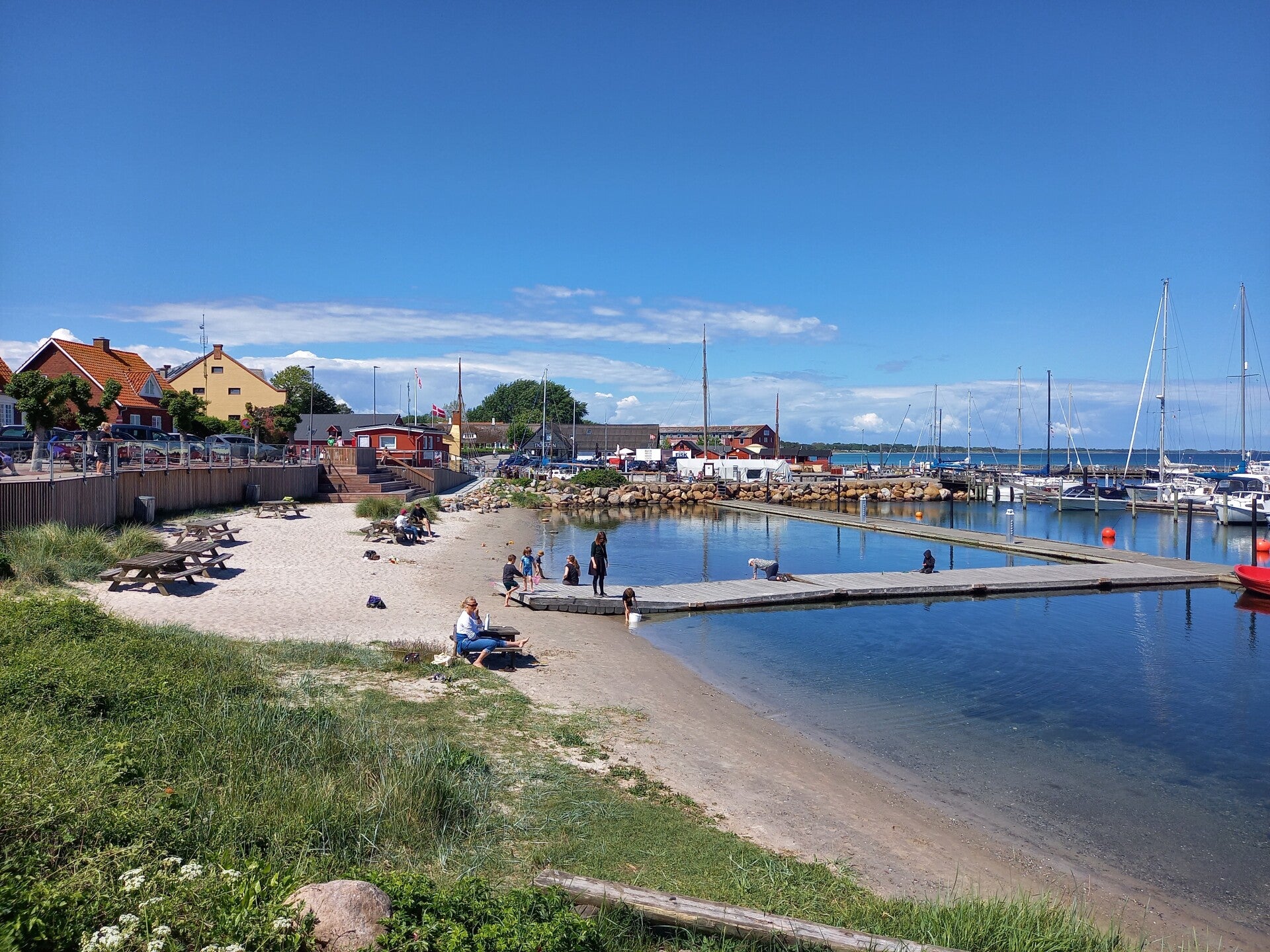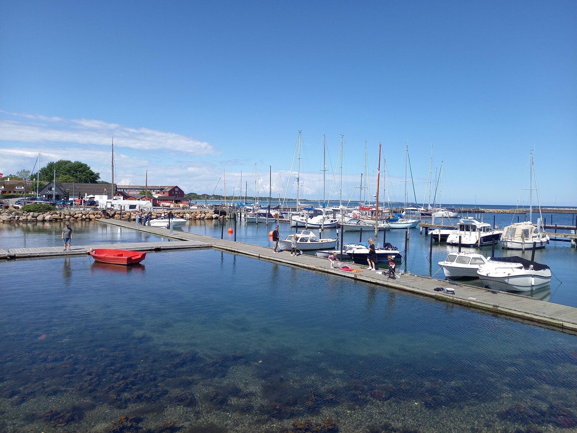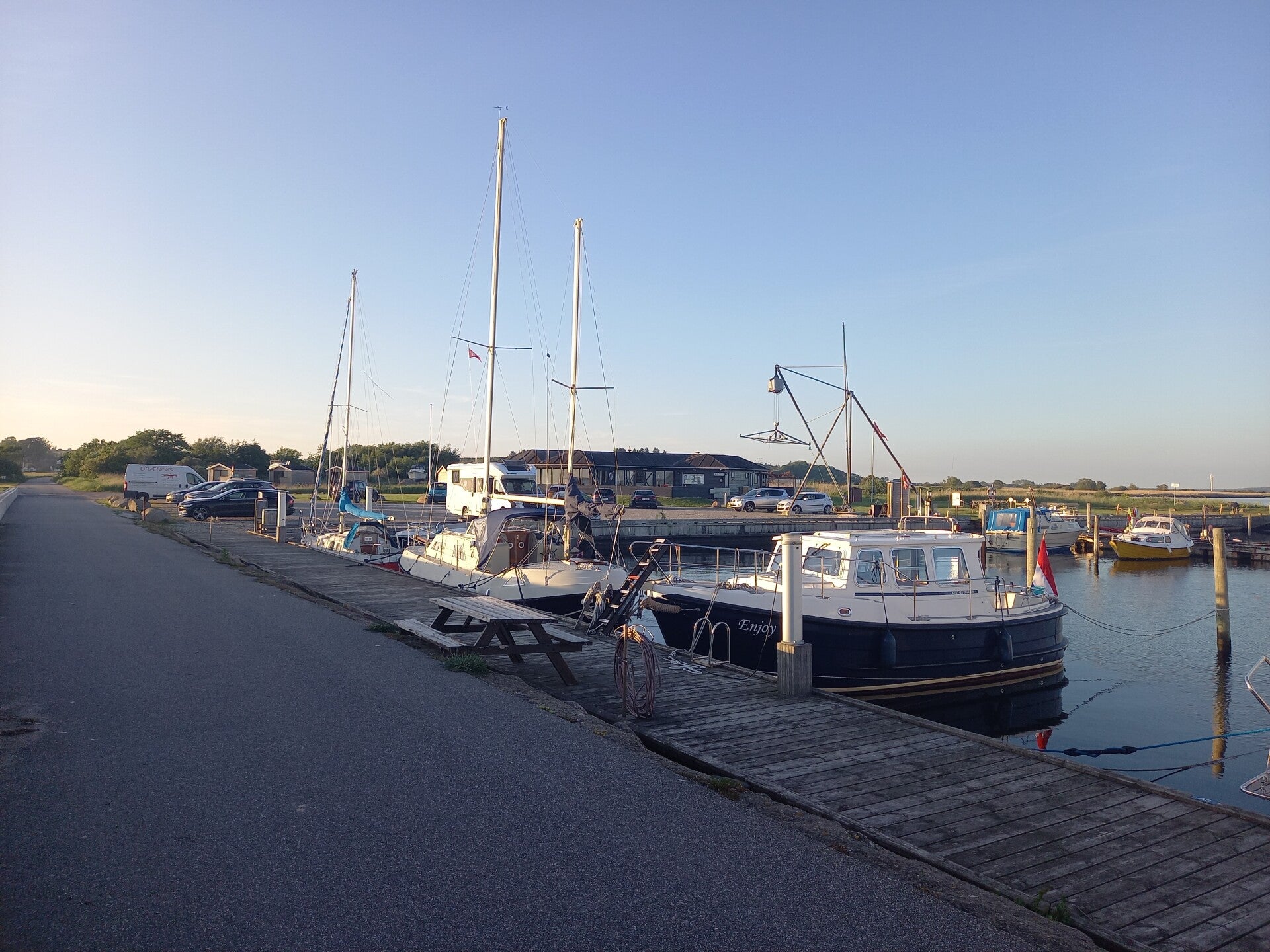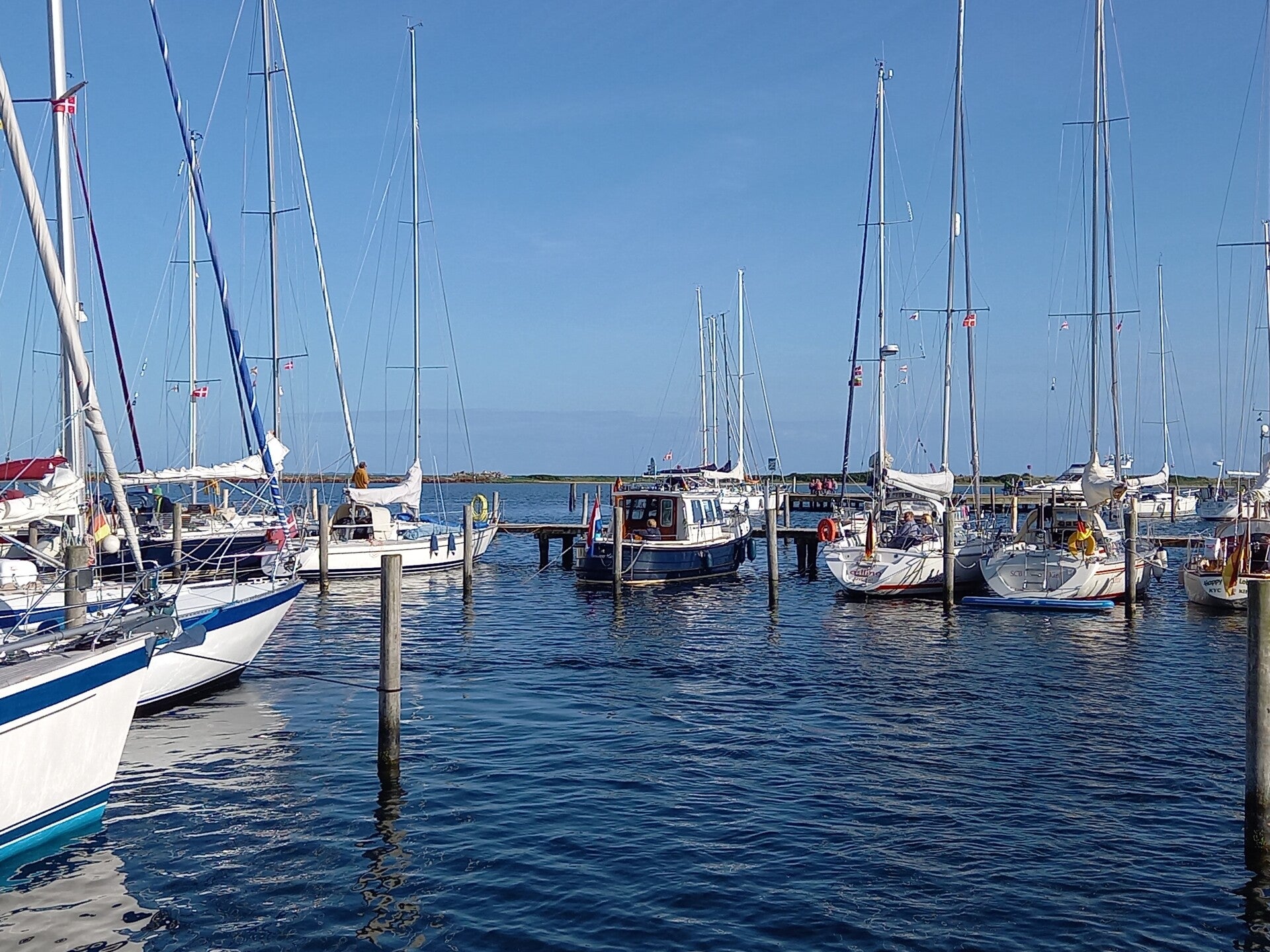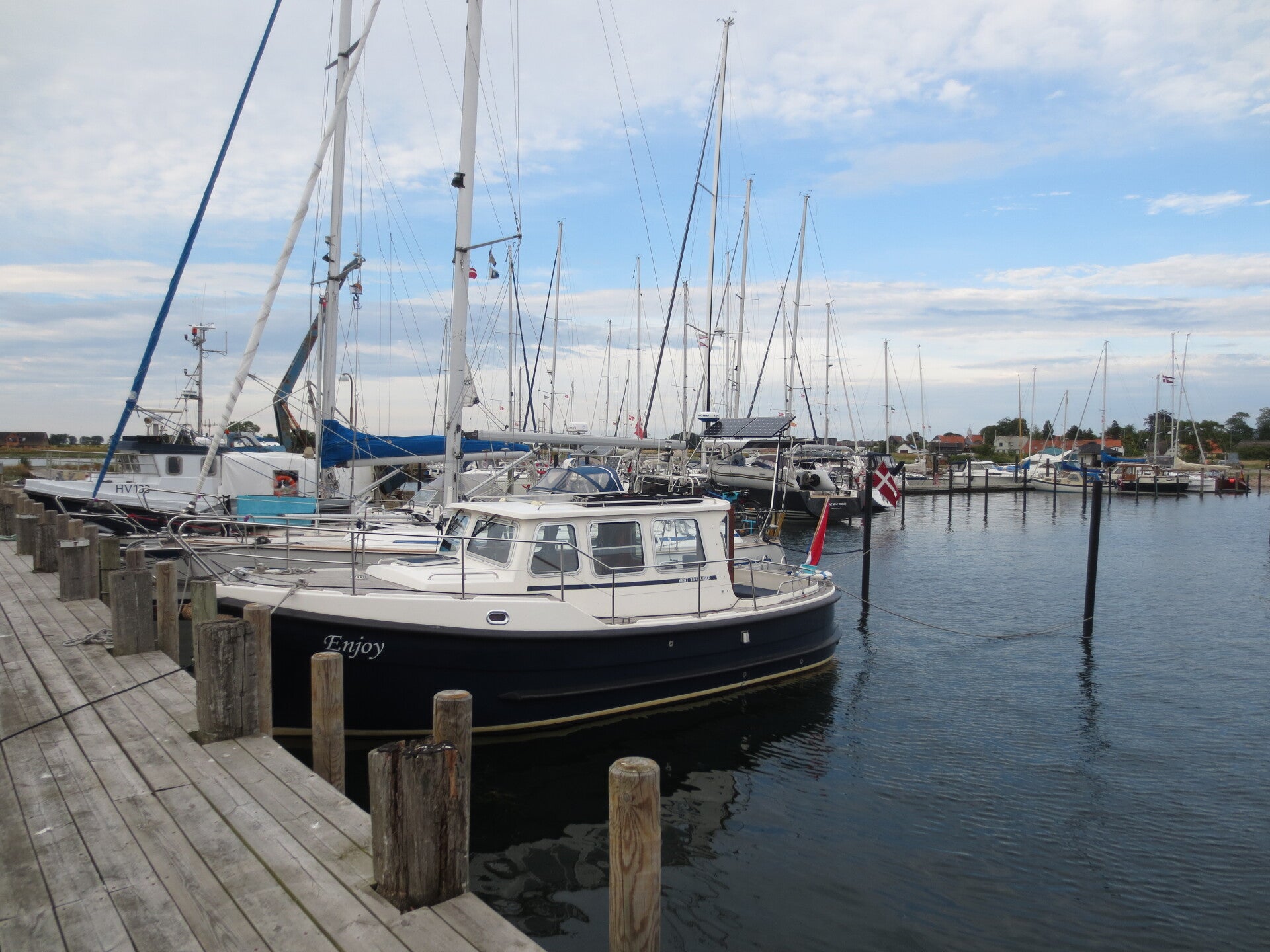 Wij zijn om 11.00 uur vertrokken uit de haven van Tunø om eerst wachten tot de wind afnam. Eerst hadden we de koers recht naar het eiland Hjarnø. Dit was met de vervelende golven niet zo plezierig en de koers verlegt naar Hou. Toen we voor het eilandje bij Hou kwamen zijn we langs de kust naar het zuiden gevaren met weinig golfslag. Het was prachtig weer onderweg. Op het kleine eilandje Hjarnø was in de haven nog maar een plek vrij. We hebben betaald met geld in een envelop die we in de haven brievenbus hebben gegooid. Daarna hebben we het hele eiland rondgelopen precies 10km.