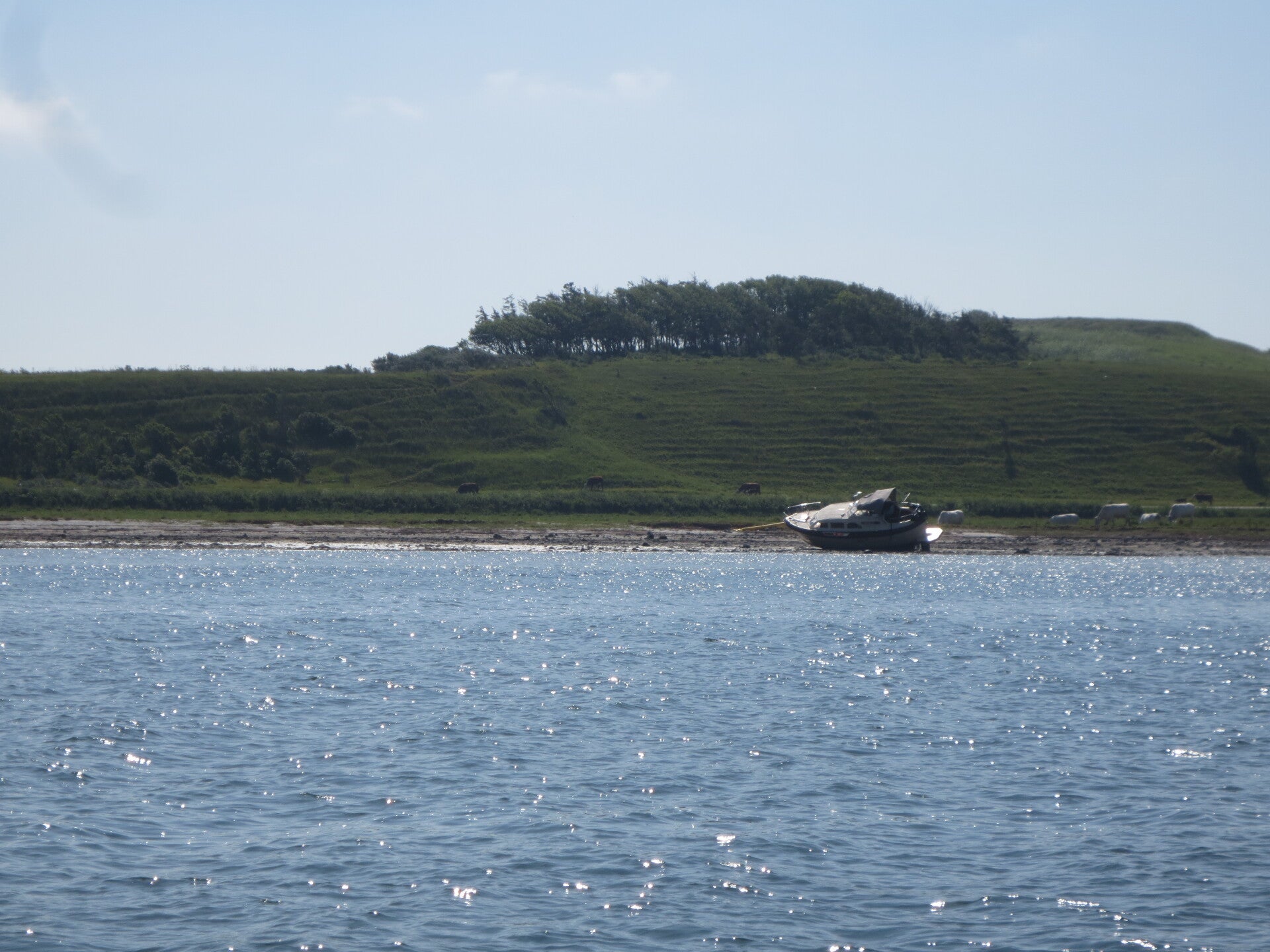 Wij zijn om 09.00 uur vertrokken uit Hjarnø en naar het eiland Endelave gevaren. Onderweg net voor Endelave lagen wel 150 zeehonden op een droog liggende zandplaat. Bij aankomst was de haven bijna leeg. Het aanmeren was even hier anders. De achterste palen stonden wel 8 meter uit elkaar dus aangemeerd met hele lange lijnen. Later zagen we de Denen aanmeren met 1 achterlijn naar een paal. Even aan een Deen gevraagd wat de bedoeling was. Hij vertelde mij dat 1 lijn de bedoeling is dit omdat er dan veel meer boten naast elkaar kunnen liggen. In de haven hebben we de fietsen uitgepakt en hebben we een rondje eiland gemaakt. Endelave is een vlak eiland met bos, heide en boeren akkers.