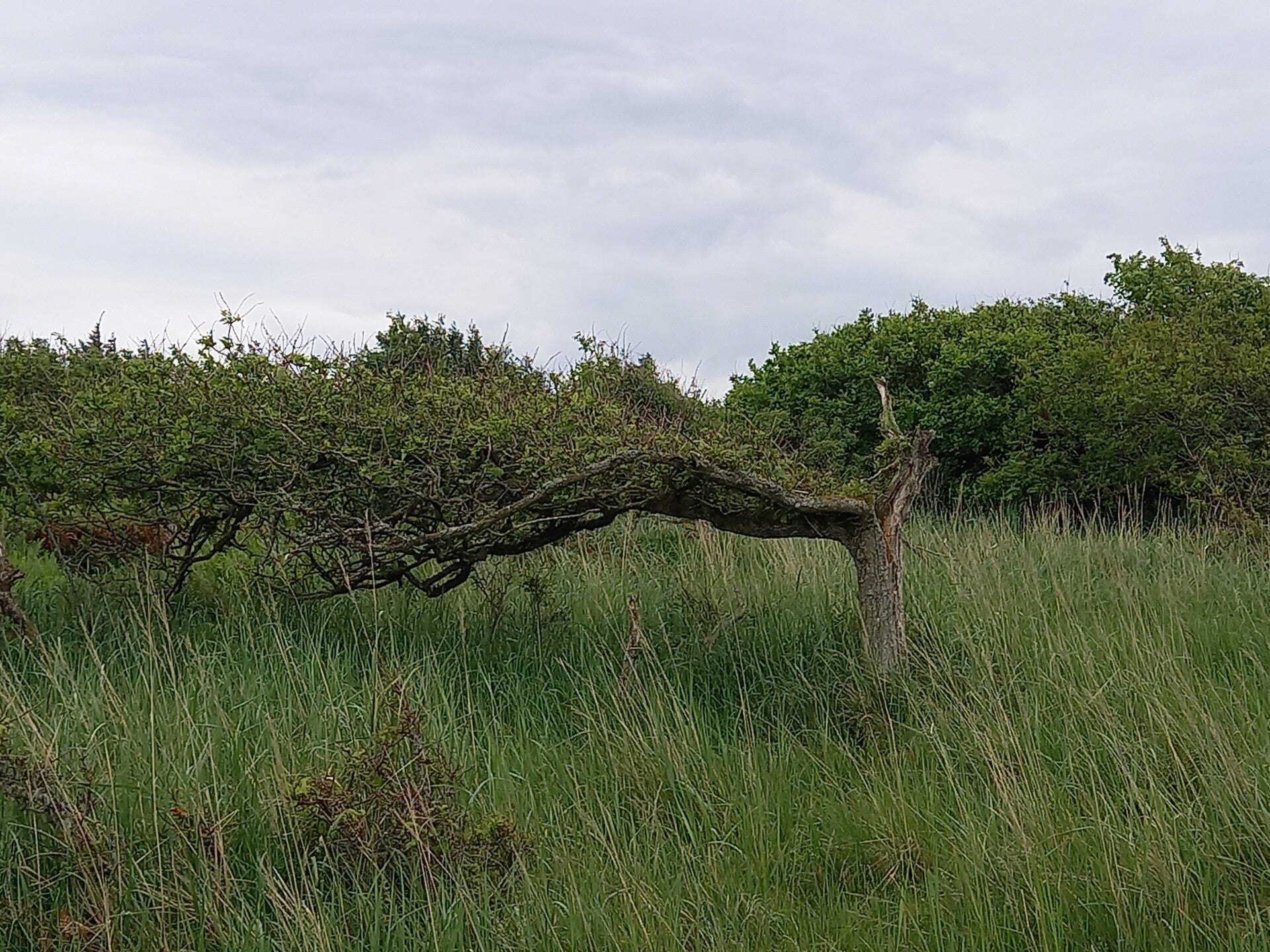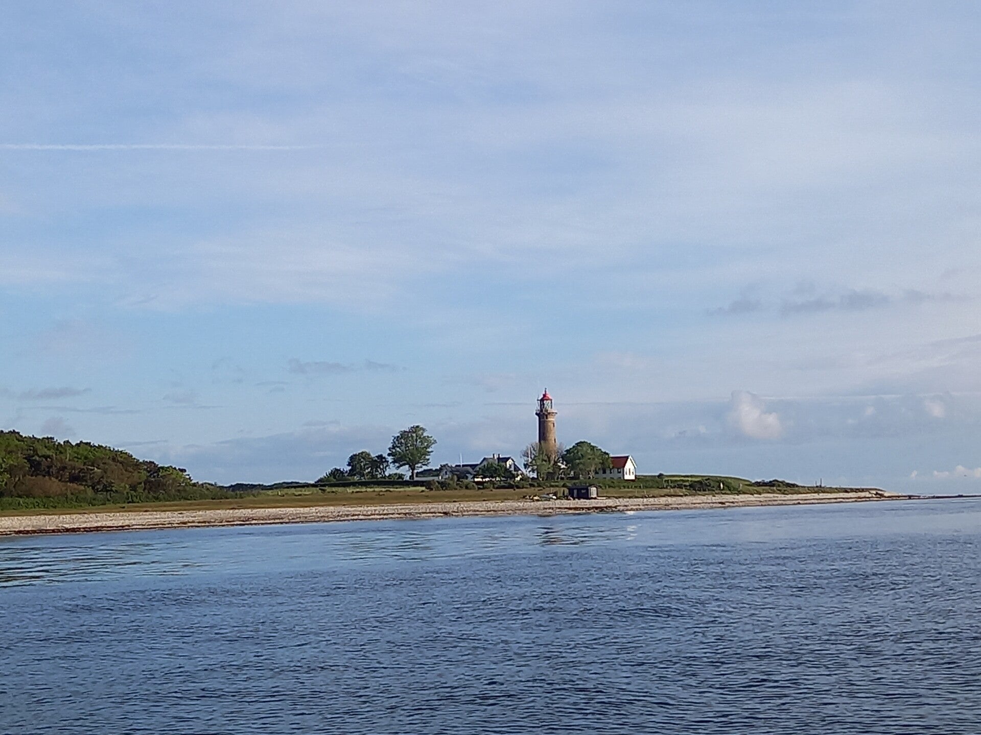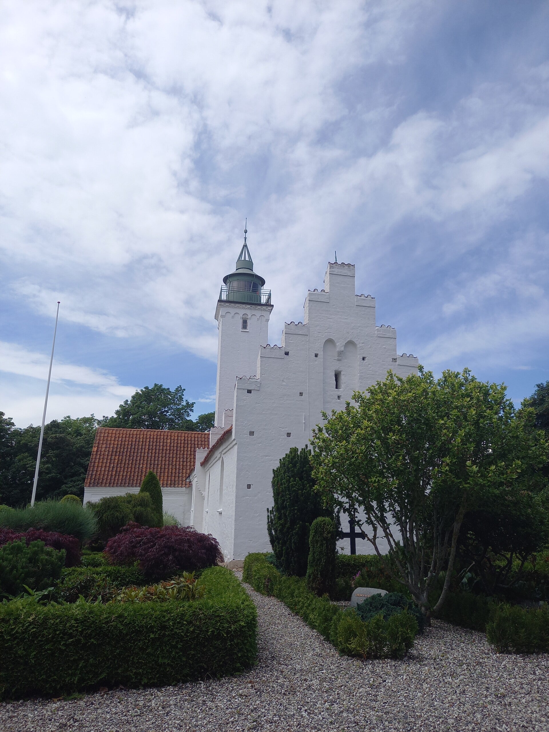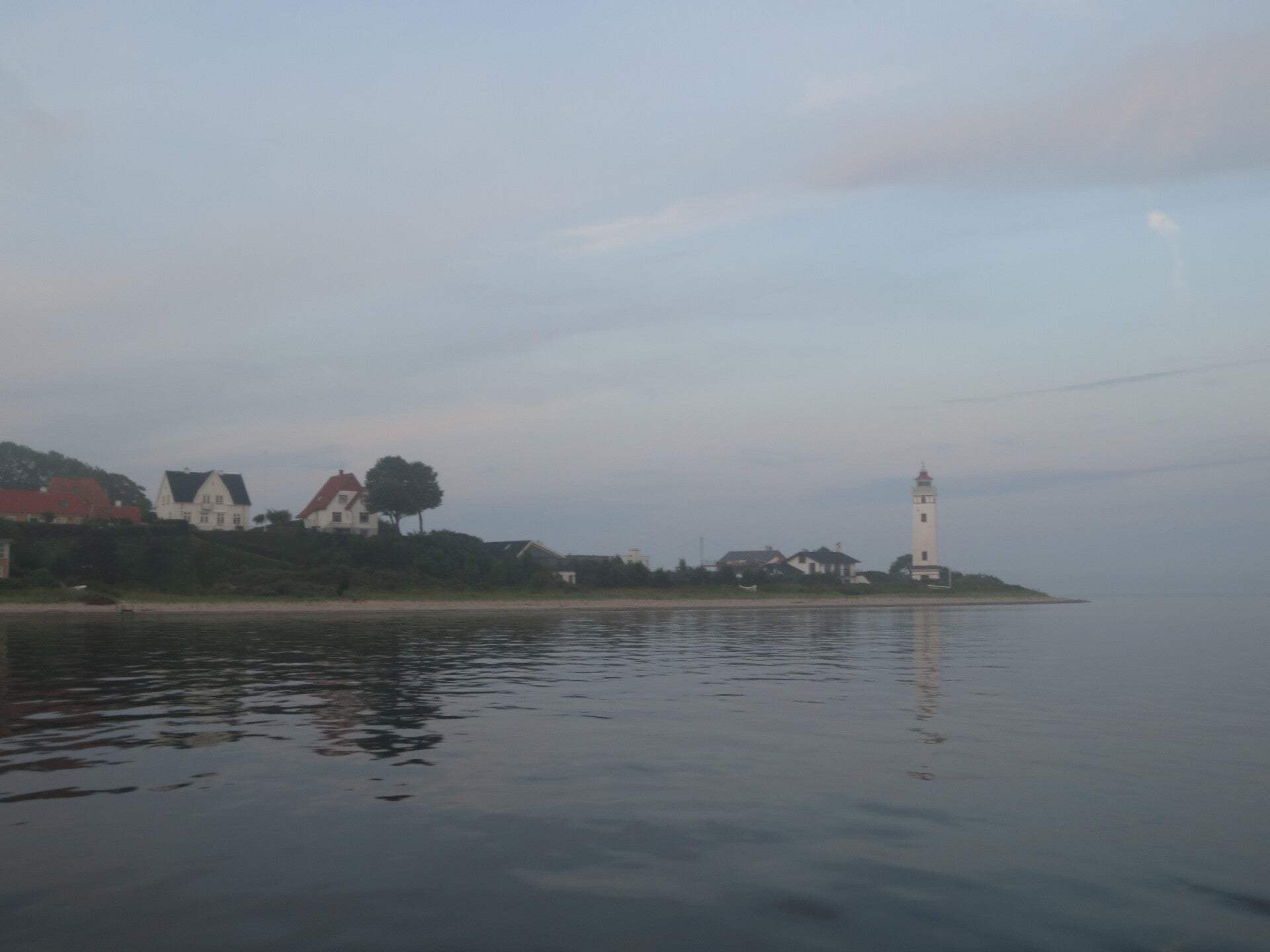 Wij zijn om 07.00 uur vertrokken uit Ebeltoft en gevaren naar het auto loze eiland Tunø. Onderweg hebben we groepen tuimelaars gezien op het gladde water. In de verte kwam er een dikke bui aan met een slurf naar beneden. Een windhoos. Wij hadden de stroom flink tegen. We hebben aangemeerd aan een lange steiger waar nog net een Kent 28 plekje over was. Wij hebben het halve eiland rondgewandeld en ook bij de kerkvuurtoren geweest. Het was een mooie wandeling door het dorp en langs de kliffen.