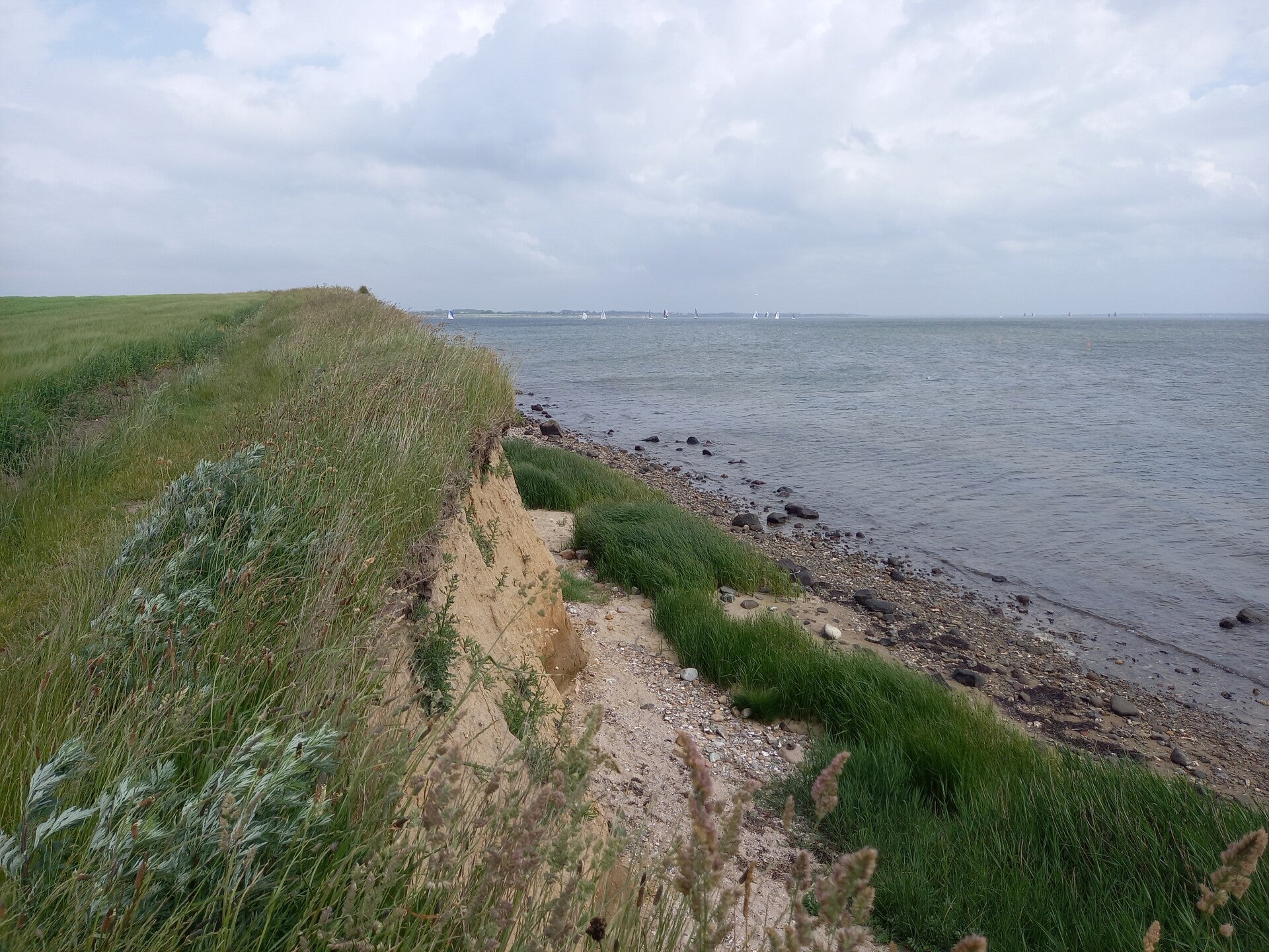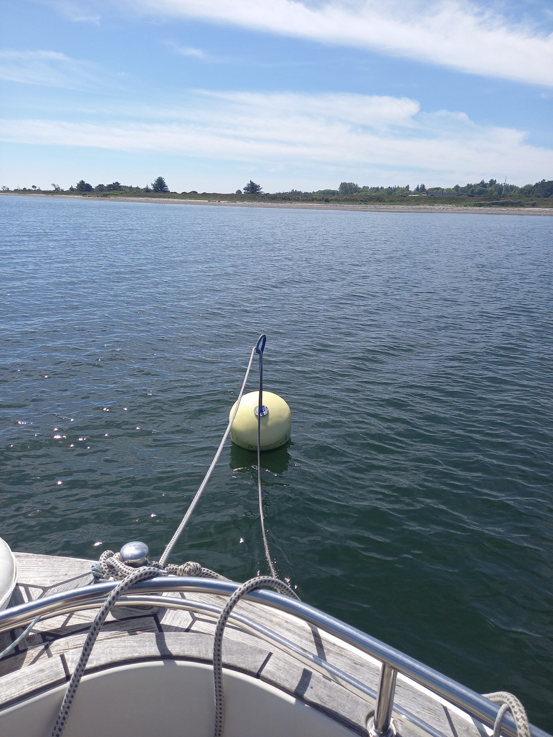 Wij zijn om 06.15 uur vertrokken uit Bogense op weg naar Middelfart maar toen we de bocht bij Røjle Klint omgingen was het zulk mooi weer dat we hebben besloten om het anker te laten zakken.