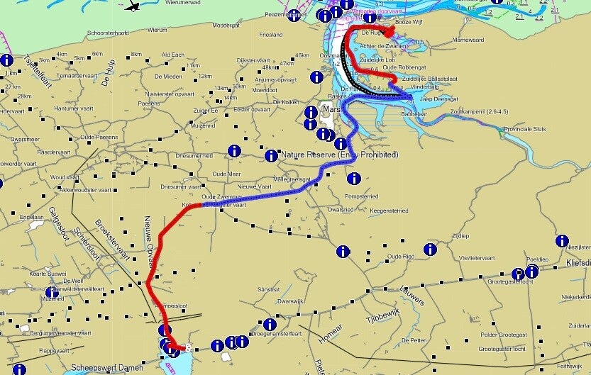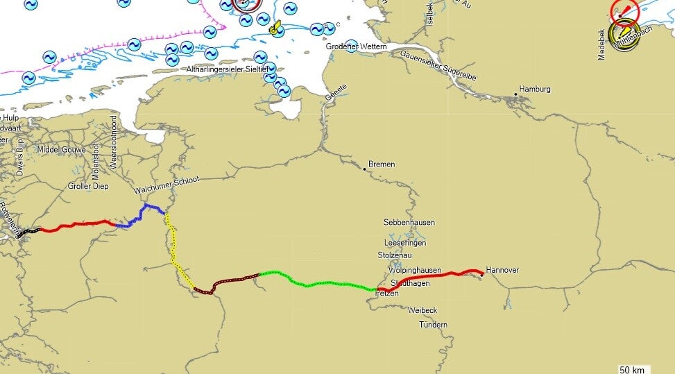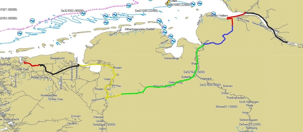 Om van de Weser naar de Elbe te komen zouden we door de beruchte Duitse bocht moeten. Dit gaan we niet doen!