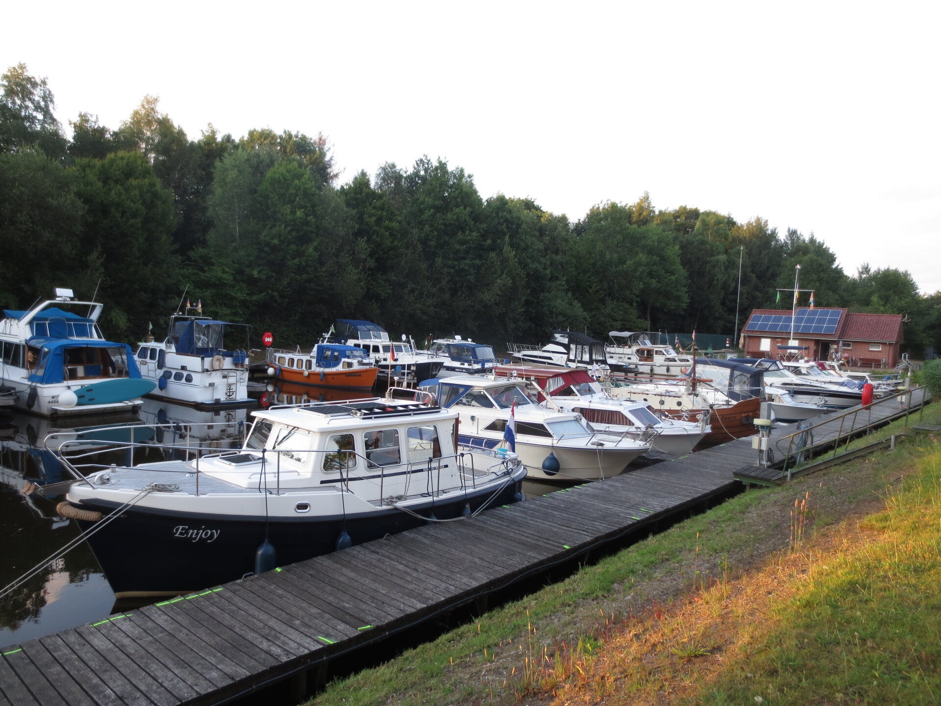 Vanmorgen om 07.15 uur vertrokken en het Dortmund-Ems-Kanal opgevaren. De sluis bediening was prima. Korte wachttijden van +/- 15 min. Uiteindelijk bij sluis Alterrheine was een wacht rij van veel vrachtschepen dus hebben we besloten om hier de nacht door te brengen. Het was een soort buurthaventje met een eigen gemaakte steiger. We kregen toestemming van een van de bootliggers om hier te overnachten km118,0. Allemaal aardige en vriendelijke mensen.