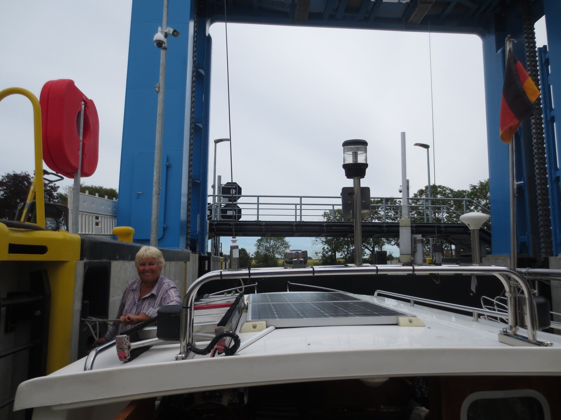 Om 06.00 uur opgestaan en eerst naar de bakker in Bad Bevensen geweest. Lekkere broodjes en overheerlijke koffiebroodjes. Om 07.30 vertrokken wij richting hefsluis Scharnebeck. Bij aankomst konden we gelijk met een vrachtschip mee van 86 meter. De hefbak is 100 meter lang dus onze boot paste precies erachter. Imposant bouwwerk met een grote bak water dat ons 35 meter naar beneden bracht. Daarna nog een klein stukje de Elbe op met stroom tegen van 2,5 km/uur naar Lauenburg. Bij sluis naar het Elbe-Lübeck-Kanal moesten we 40 min wachten ivm met de waterstand of zoiets. Daarna zijn we gevaren naar de Lanzer See waar we een mooi ankerplekje hebben opgezocht. Het water was 19,5 graden dus zwembaar. Paar rondjes boot gezwommen.