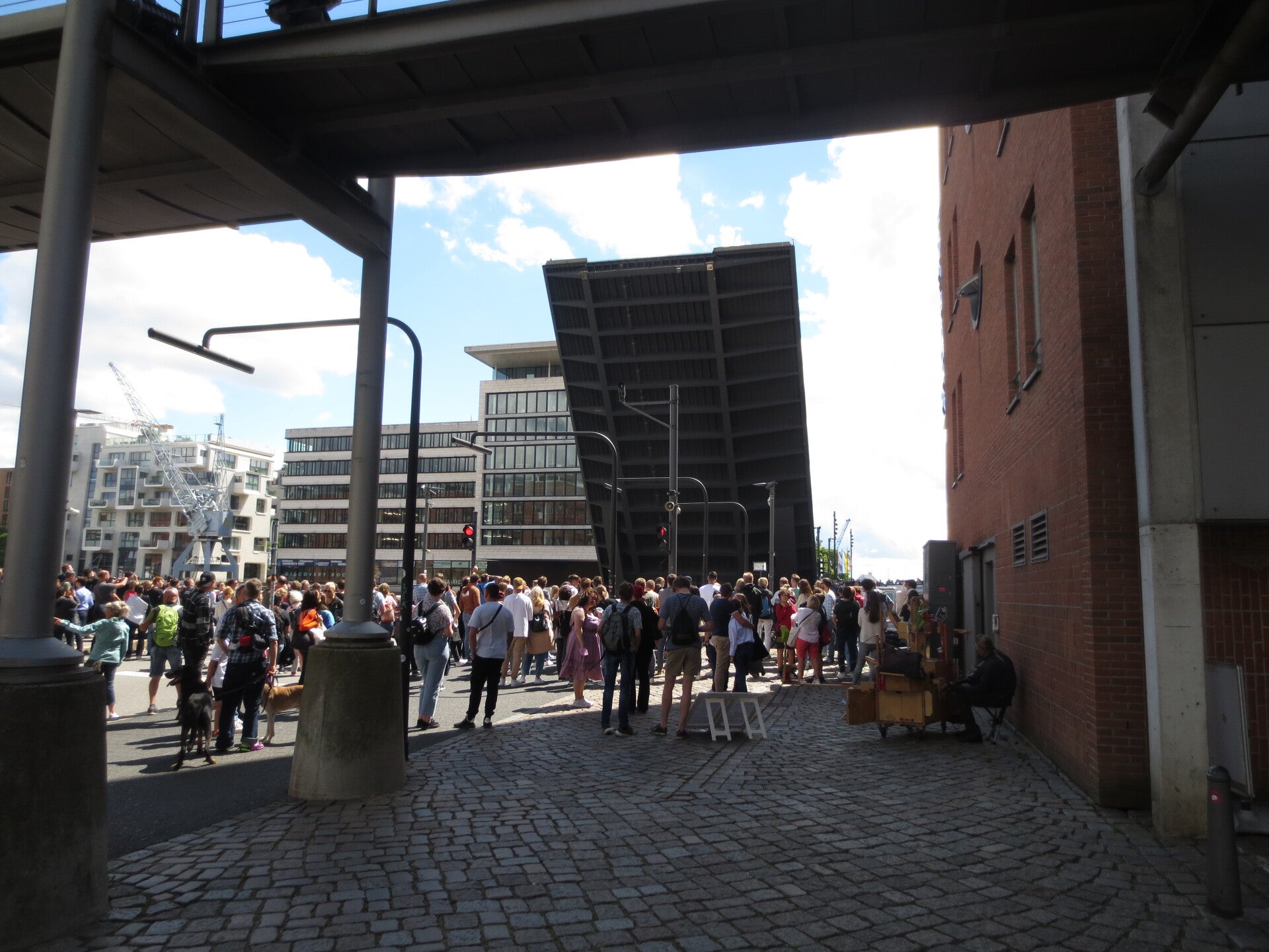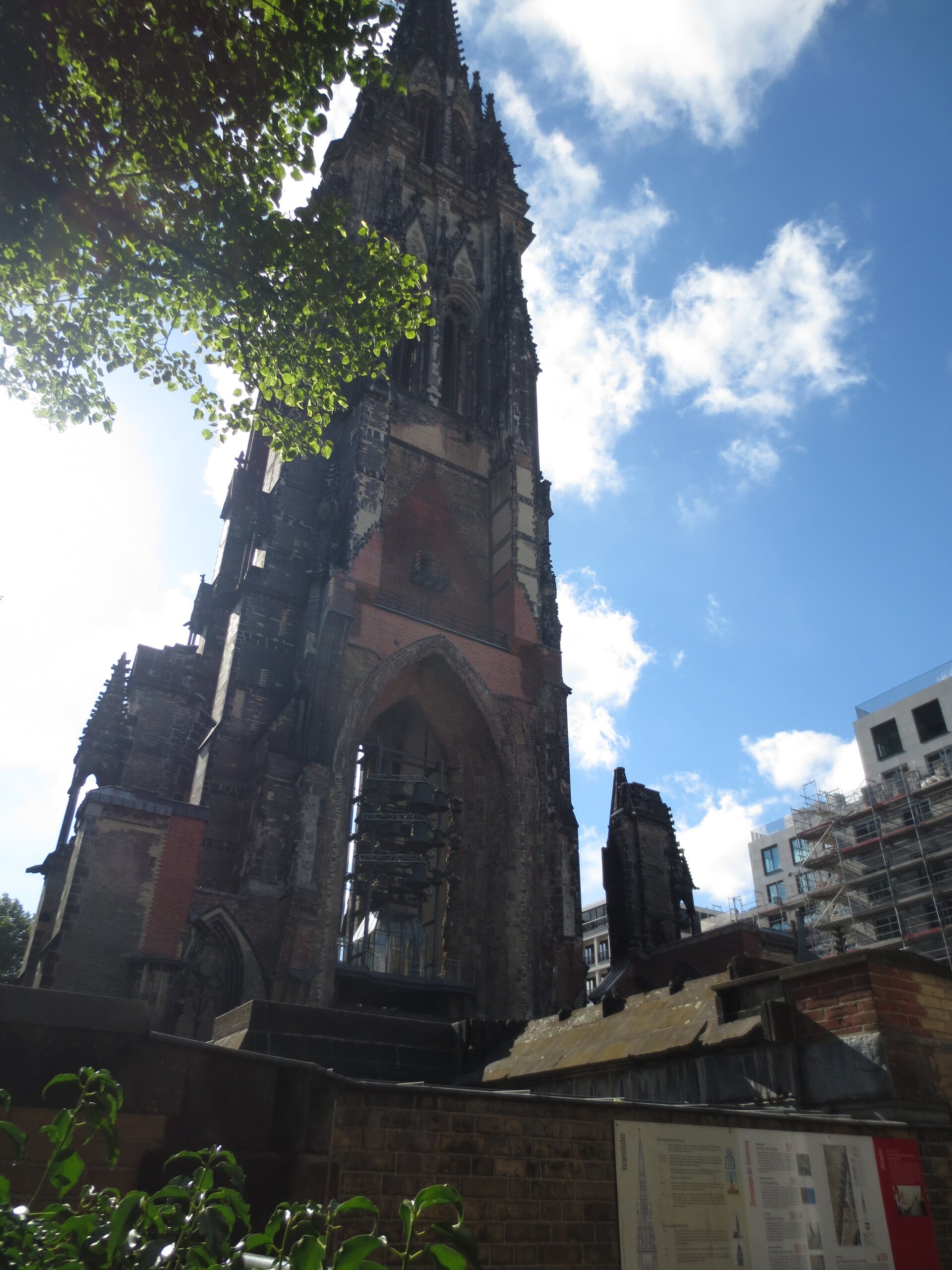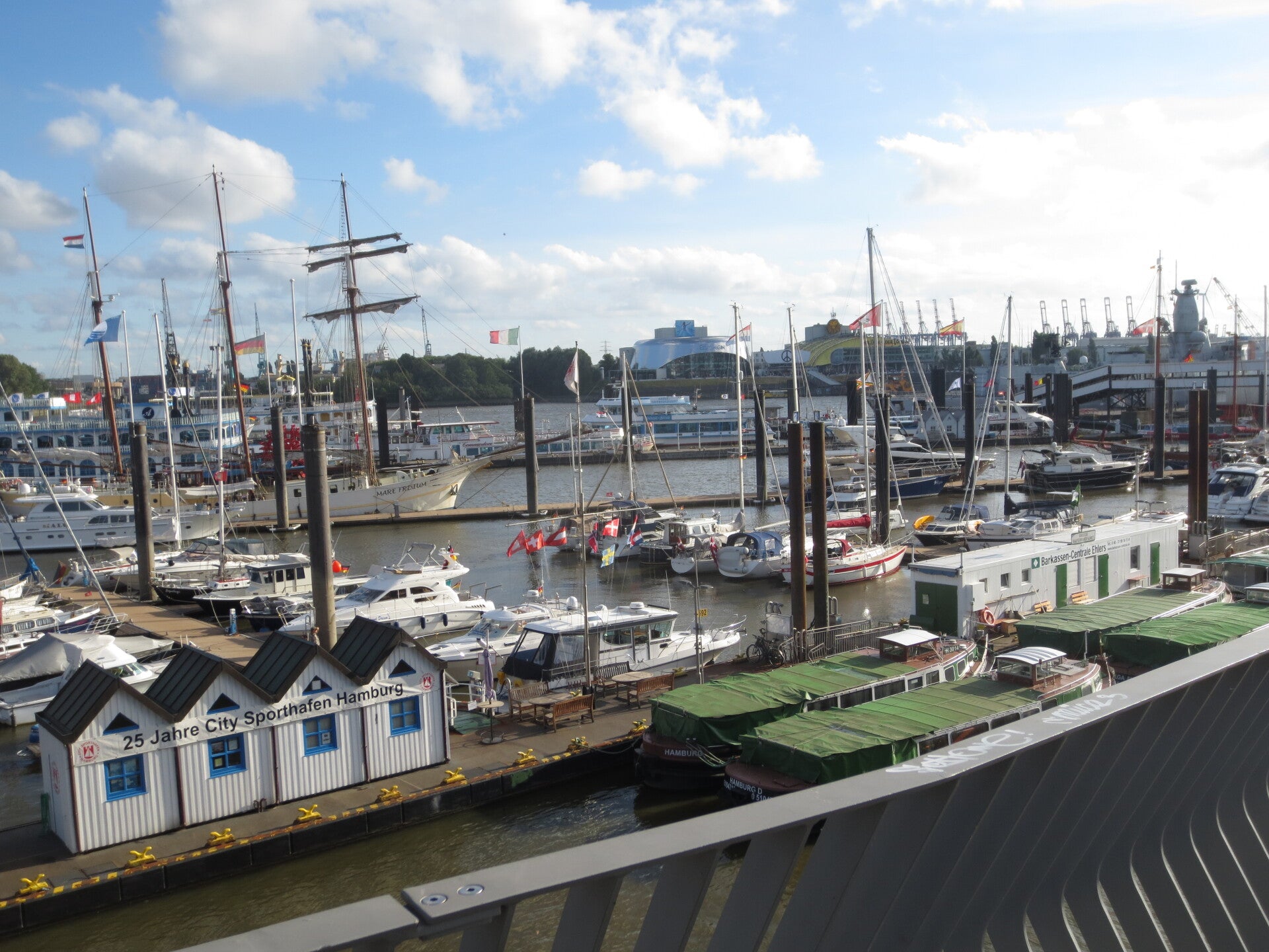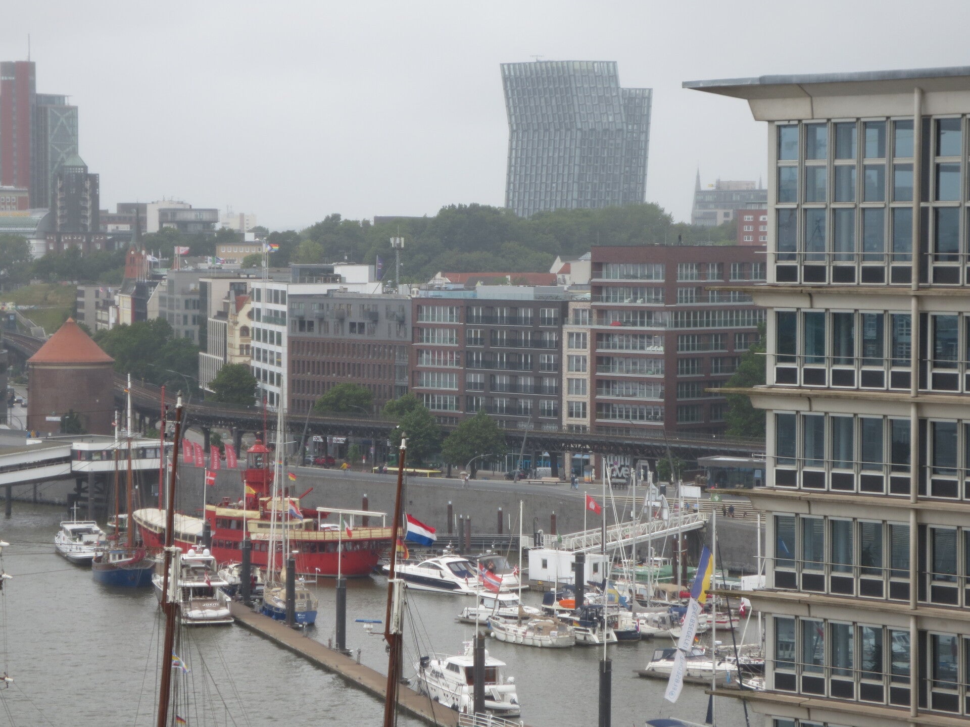 Wij zijn om 06.00 uur uit Glückstadt vertrokken. Dit was 1 uur na laag water. Om 10.10 meerden we af in de City Sportboot Hafen in Hamburg. Nadat we de haven betaald hadden zijn we gelijk naar Elbphilharmonie gebouw gegaan om kaartjes te regelen voor rondwandeling op de plaza. We konden gelijk door en met een enorme roltrap zijn we naar boven gegaan. Helaas kwam er op dat moment een bui over zodat het uitzicht een beetje mistig was. Mooi uitzicht over de haven en een gedeelte van de stad. Toen we terug waren bij de boot om een broodje te eten kwam de zon weer tevoorschijn. We hebben een mooie wandeling door de stad gemaakt. De grachten en kanalen stonden bijna droog vanwege eb. Nog bij de St. Nicolai toren geweest die overgebleven was van de kerk in de 2e wereldoorlog. Hamburg is wel een stad met veel bruggen en moderne gebouwen.