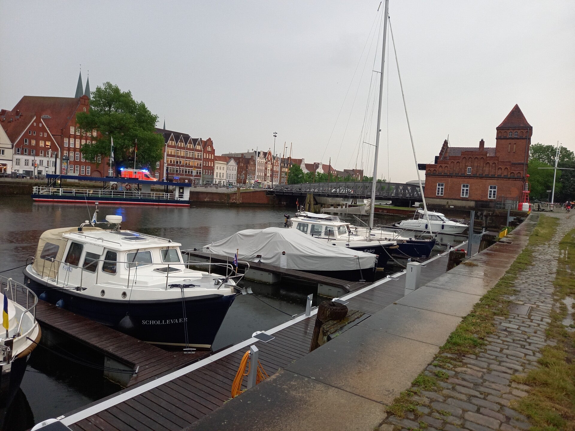Ontmoeting onderweg met Schollevaer. En samen in de haven van Lubeck.