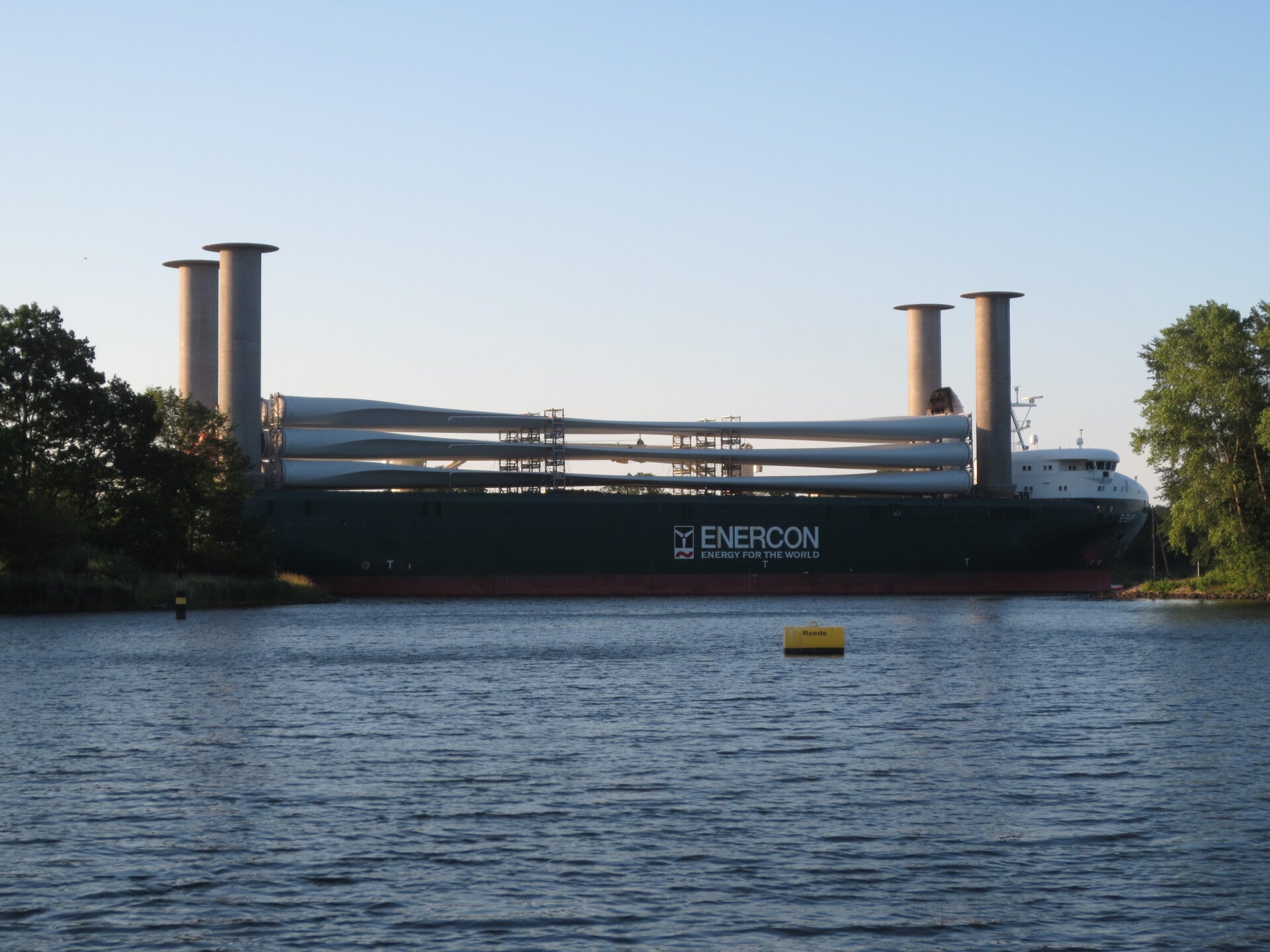 We zijn vandaag in de Flemhuder See km85 gebleven met prachtige weer en lekker kunnen zwemmen. Af en toe zagen we zeer grote schepen voorbijvaren. Ook 1 groot schip met windmolen wieken. Dit schip had een extra voortstuwing van 4 Flettner rotoren (4 cilindrische cilinders)