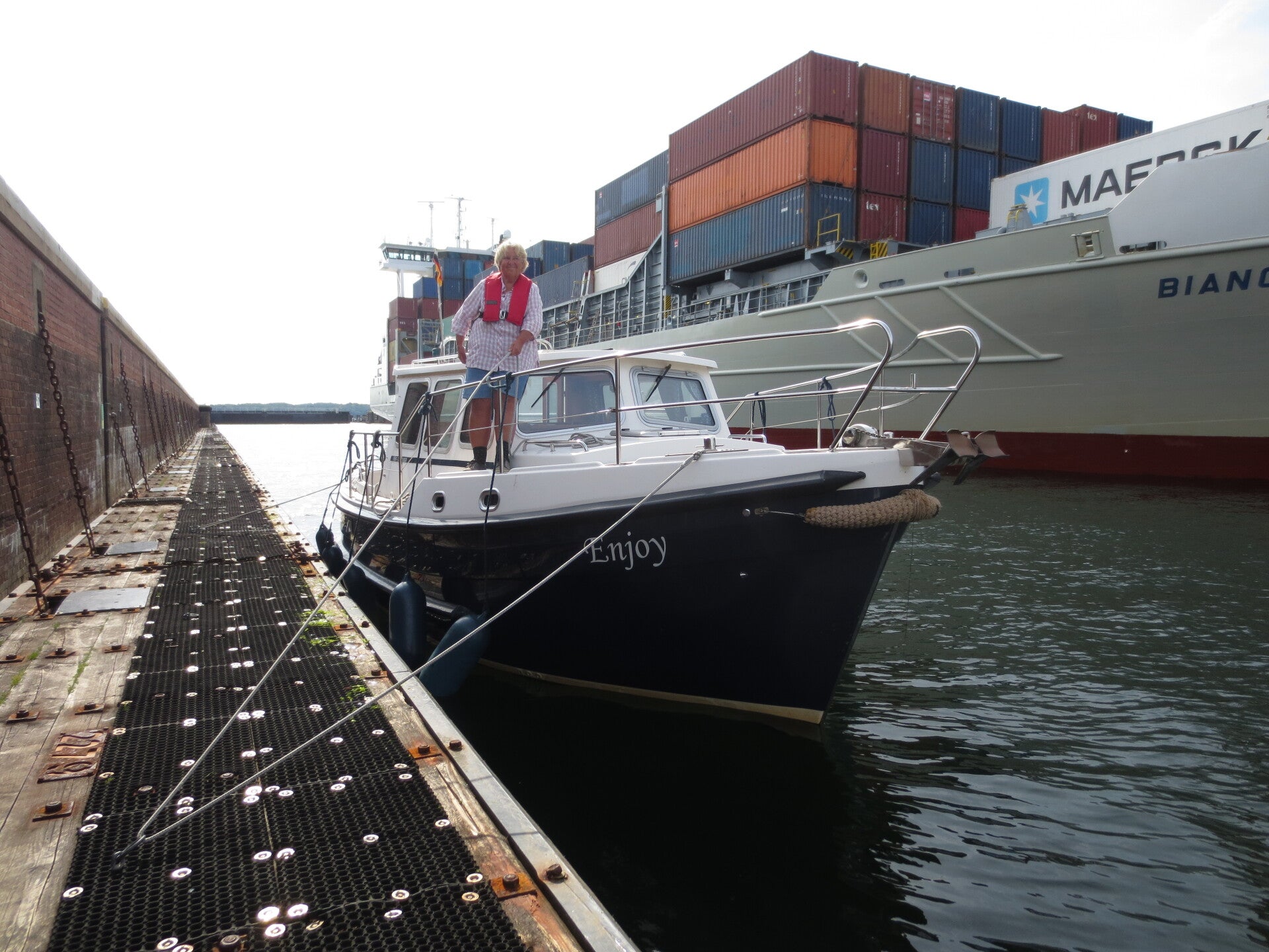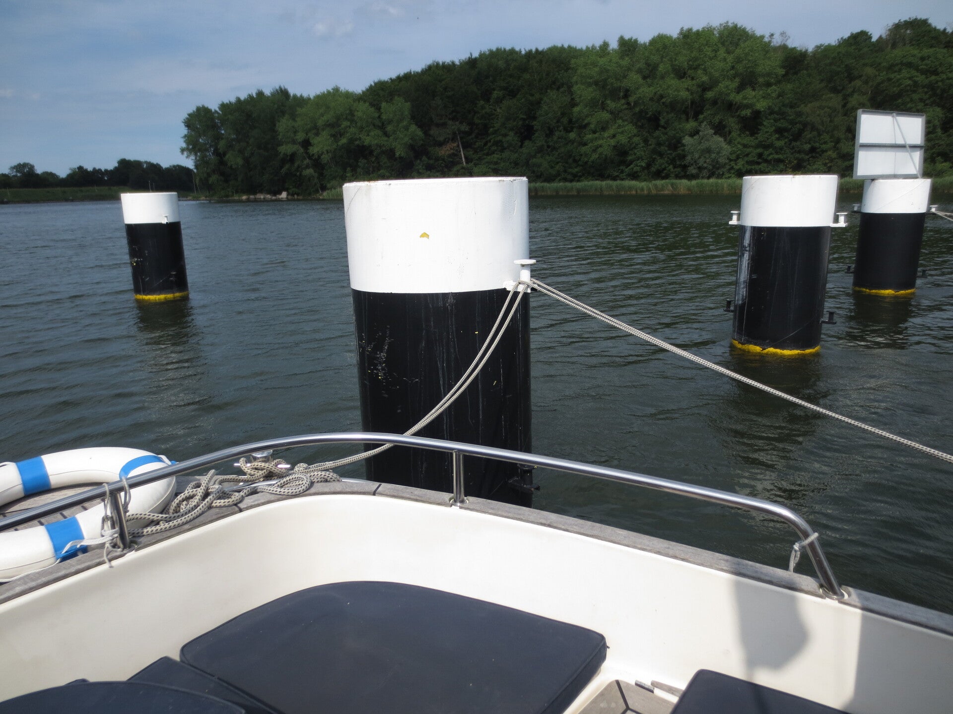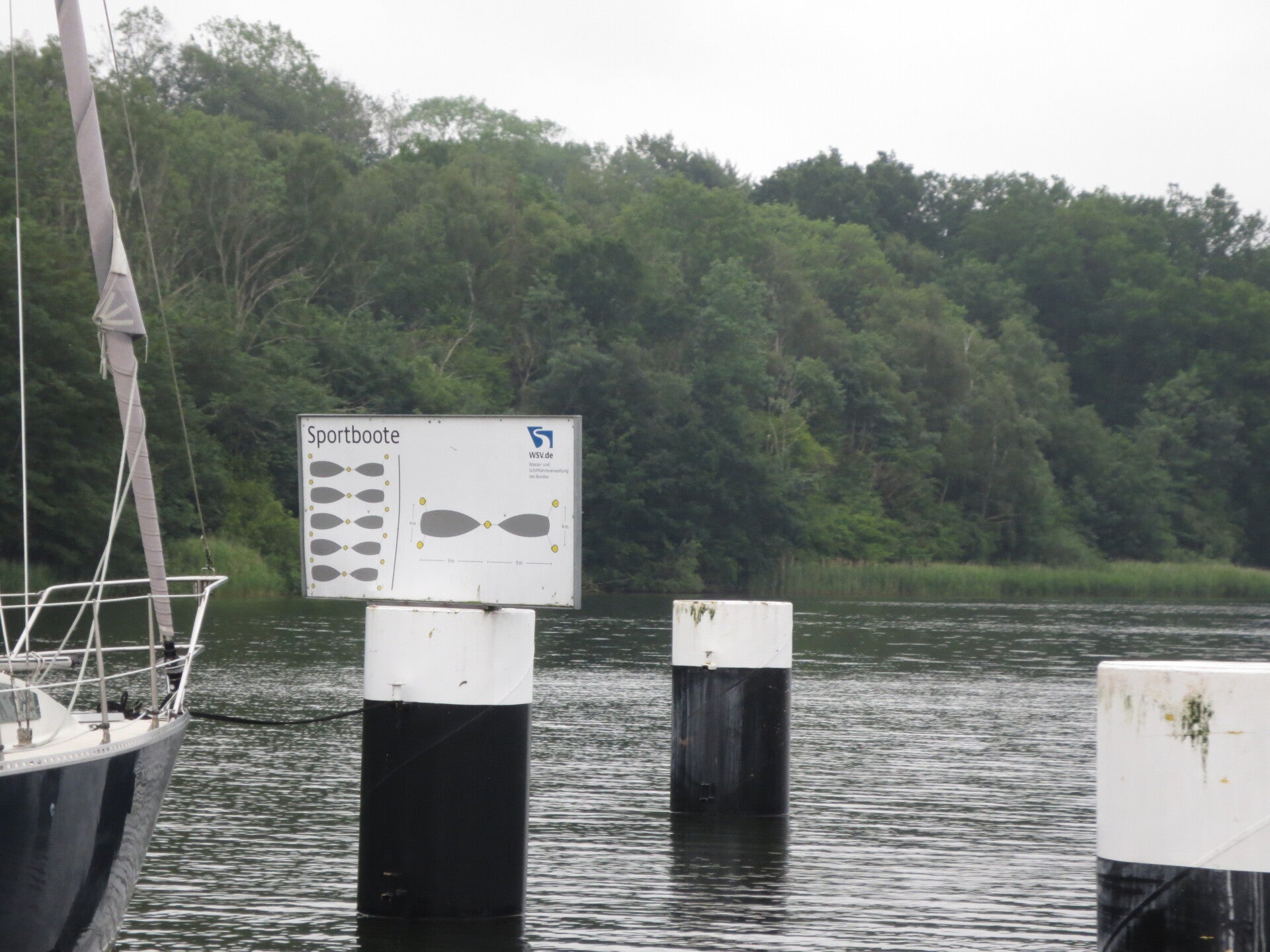 Wij zijn om 04.00 uur vertrokken vanaf Maasholm om voor de aantrekkende wind ZO5 in het Kielerfjord te zijn. Onderweg zijn we nog een fergat en een onderzeeër tegengekomen van de Duitse marine. Om 09.00 uur op een ankerplek tegenover de sluis in het Kielerfjord het anker laten zakken. Daar hebben we wat gegeten en gedronken. Op een gegeven moment was het rustig bij de sluis dus hebben we besloten om maar naar de sluis te varen. De sluis via marifoon kanaal 12 aangeroepen maar geen respons. Er lag ook al een zeilboot voor de sluis te wachten en nadat het licht wit was geworden zijn we achter de zeilboot de sluis ingevaren met de stootwillen aan SB zo laag mogelijk. Het grote schip wat voor ons de sluis was ingevaren en had de schroef nog draaien waarschijnlijk in de vaanstand maar dit gaf nog al wat roering in de sluis. Met een redelijke snelheid langs het schip gevaren en vooraan in de sluis aangelegd aan de drijven vlonders. We kregen de melding van de sluiswachter via de luidsprekers dat als de schuifdeur opengaat gelijk door de opening te varen en niet wachten totdat de deur open is. Na de sluis hebben we €12,00 betaald in de automaat. Daarna zijn we naar een palen aanlegplek gevaren in een meer op km 85 en om 12.00 uur vastgemaakt.