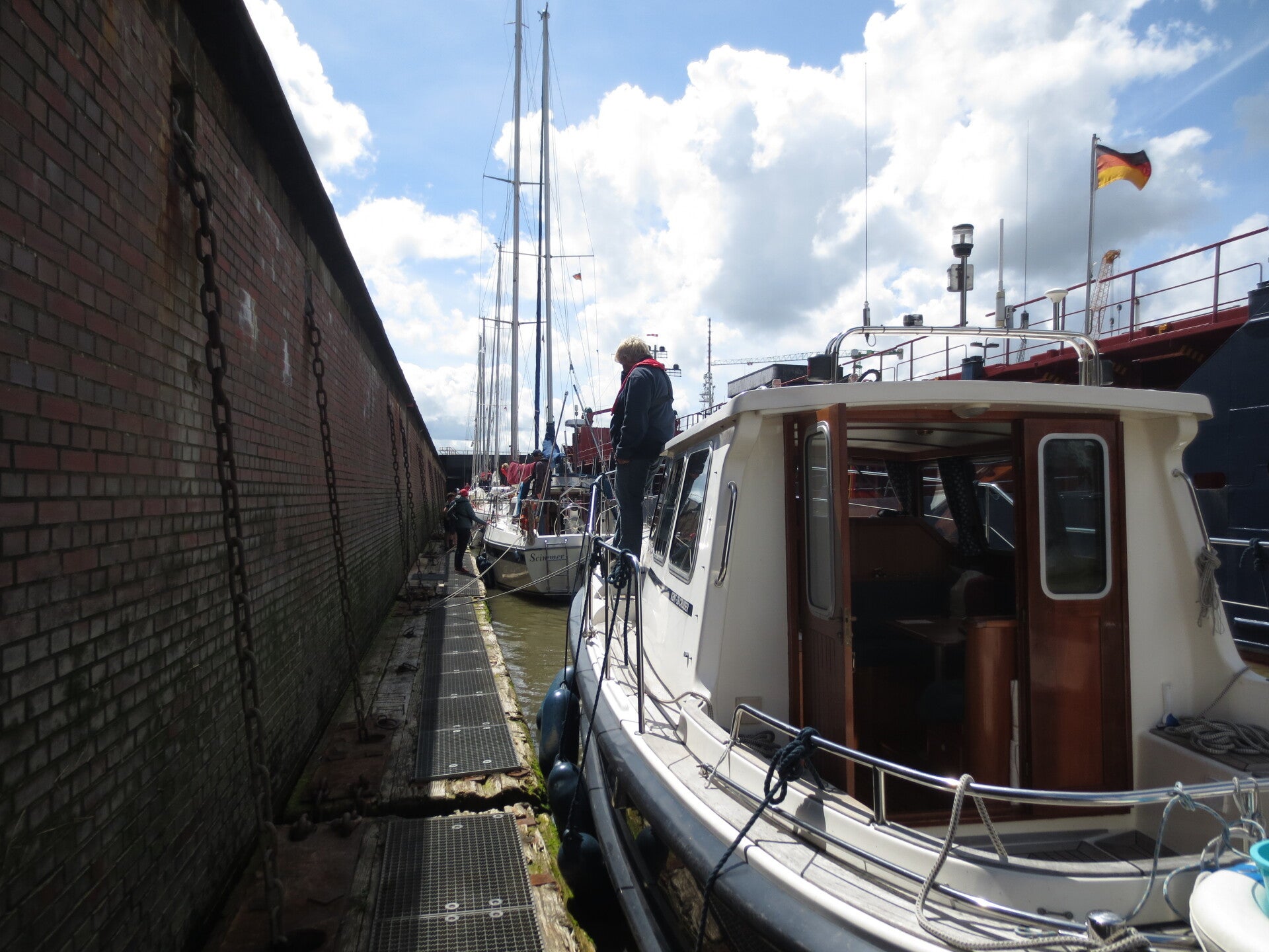 Wij zijn om 09.00 uur vertrokken en onderweg gestopt in Bad Bederkesa om wat boodschappen te doen. Daarna zijn wij verder gevaren, door 2 sluizen en uiteindelijk aangemeerd in de Geeste in Bremerhaven. Na een paar uur lagen we droog.