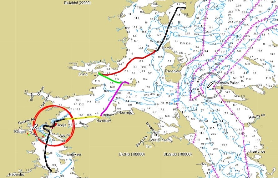 Vanmorgen om 06.00 uur vertrokken en richting de lange brug gevaren. Bij de brug hebben we de 2e opening (11 meter diep) vanaf de westkant genomen. Wij zij richting noorden gevaren tussen Maale en het onbewoonde eilandje Romsø door naar het eiland Samsø. Hier hadden we de hele weg 1km stroom mee. Waarschijnlijk komt het door het opgestuwde water van de laatste dagen wat terug stroomt via het Kattegat en het Skagerrak naar de Noordzee. In het open stuk hadden we deining vanuit het westen. Onderweg kwamen we het Amerikaanse oorlogsschip/bevoorradingsschip de USNS Patuxent tegen die richting het zuid-oosten ging. Aangemeerd in de haven van Ballen. Een mooie en gezellige haven.