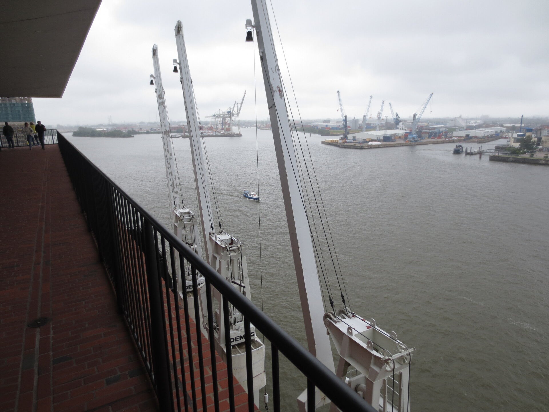 Wat ons opviel was dat de wachtplaats voor boten aan de Elbe kant nog steeds een paar oude palen zijn van hout en staal en dat bij een miljoenen project.