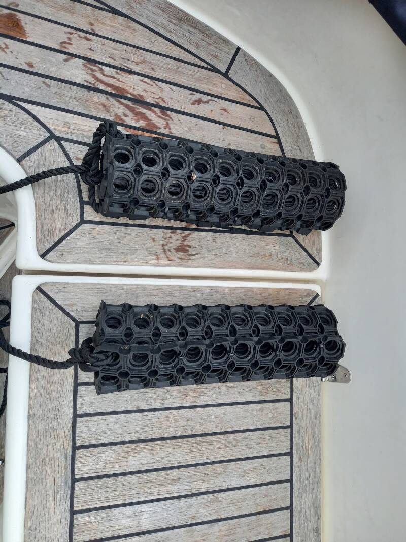 Wij hadden al 5 jaar rubberen deurmatten in de boot liggen voor de Franse sluizen. Van de boot die voor ons is aangemeerd in Dinant geleerd dat je de mat moet oprollen en fixeren en voorzien van een touw. Dan kun je deze onderwaterstootwillen gebruiken in de sluizen voor als het water totaan de rand staat.
