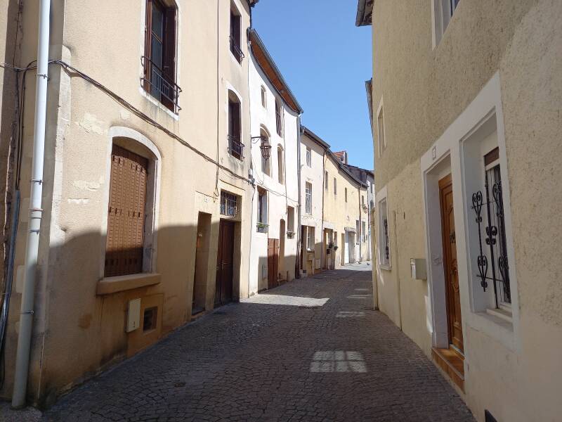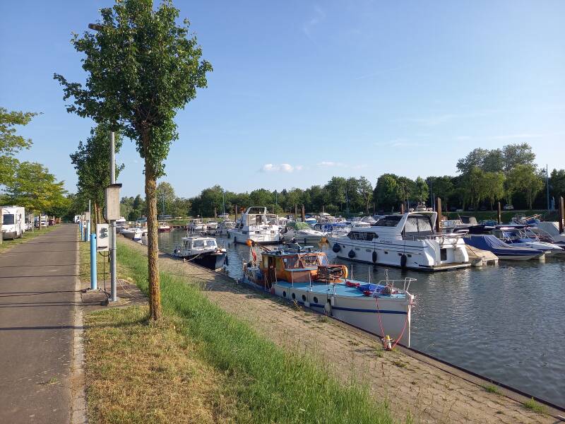 Om 09.45 uur vertrokken en om 10.30 uur gevaren door sluis Pompey. Om 11.15 uur door sluis Custines gegaan. Daarna gevaren door sluis Blenod - totaal 12,2 meter omlaag. Was een mooie tocht door een prachtig gebied. Wat ook geweldig was dat we geen trillend stuurwiel en geen rammelende schroef hadden door de waterplanten. Vandaag geen waterplant gezien. Aangemeerd in de haven van Mousson. 2 passanten boten en 41 campers. In de namiddag de stad in geweest voor een wandeling.