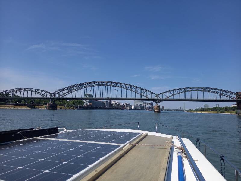 Vanmorgen om 07.30 uur vertrokken en de Rijn afgevaren. Wij zijn aangemeerd om 14.15 uur in de jachthaven van Köln. Het was druk in de stad. Er was het “Bootshaus Sommerfest” gaande.