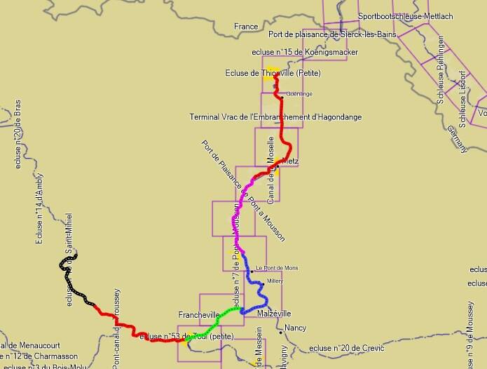 Anker omhoog om 08.45 uur. Eerst nog even gezwommen. Door 4 kleine sluizen gegaan totaal 16,38 meter naar beneden. Om 13.30 uur aangemeerd in Thionville.