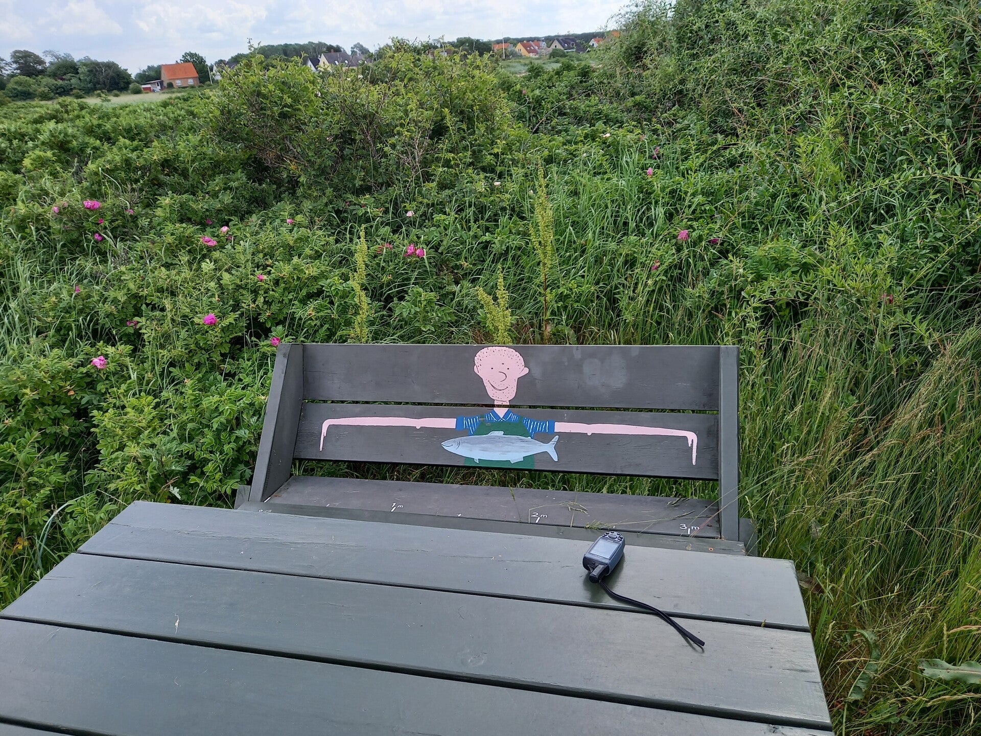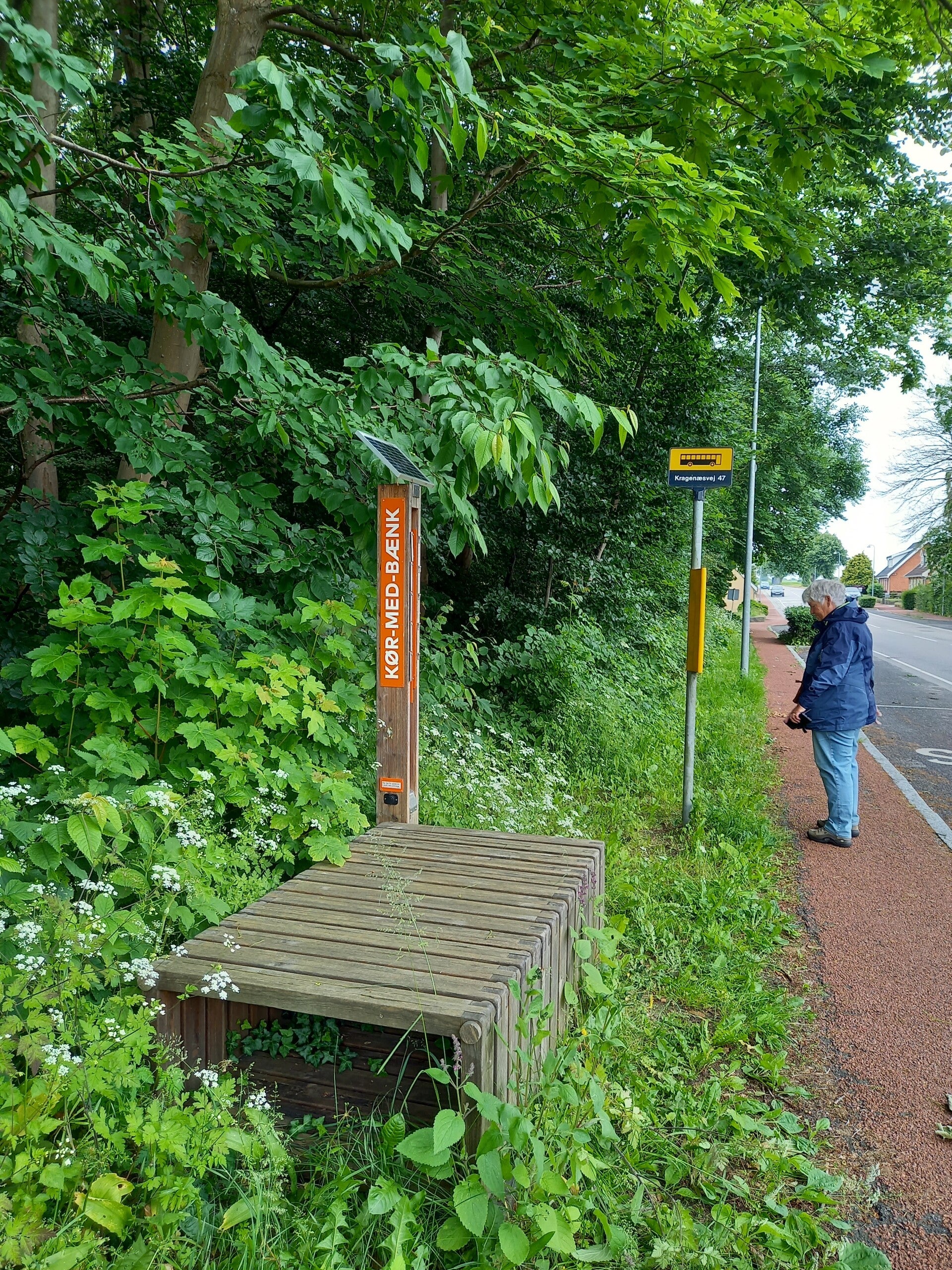 Vandaag in Kragenæs gebleven vanwege de wind. Wandeling met mooi weer gemaakt en tussendoor naar de supermarkt. Onderweg nog een busbankje bekeken. Dit bankje was uitgevoerd met een zonnepaneeltje voor een usb aansluiting. Dan kun je tijdens het wachten op de bus je telefoon opladen. De bus bestel je doormiddel van een app. Is er meer dan 20 minuten tussen bestelling en aankomst van de bus dan is de busreis gratis.