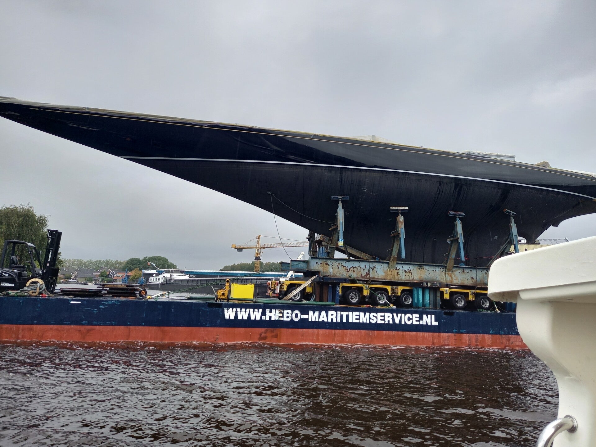 Onderweg bij Zwartsluis. Nieuwe romp is onderweg.