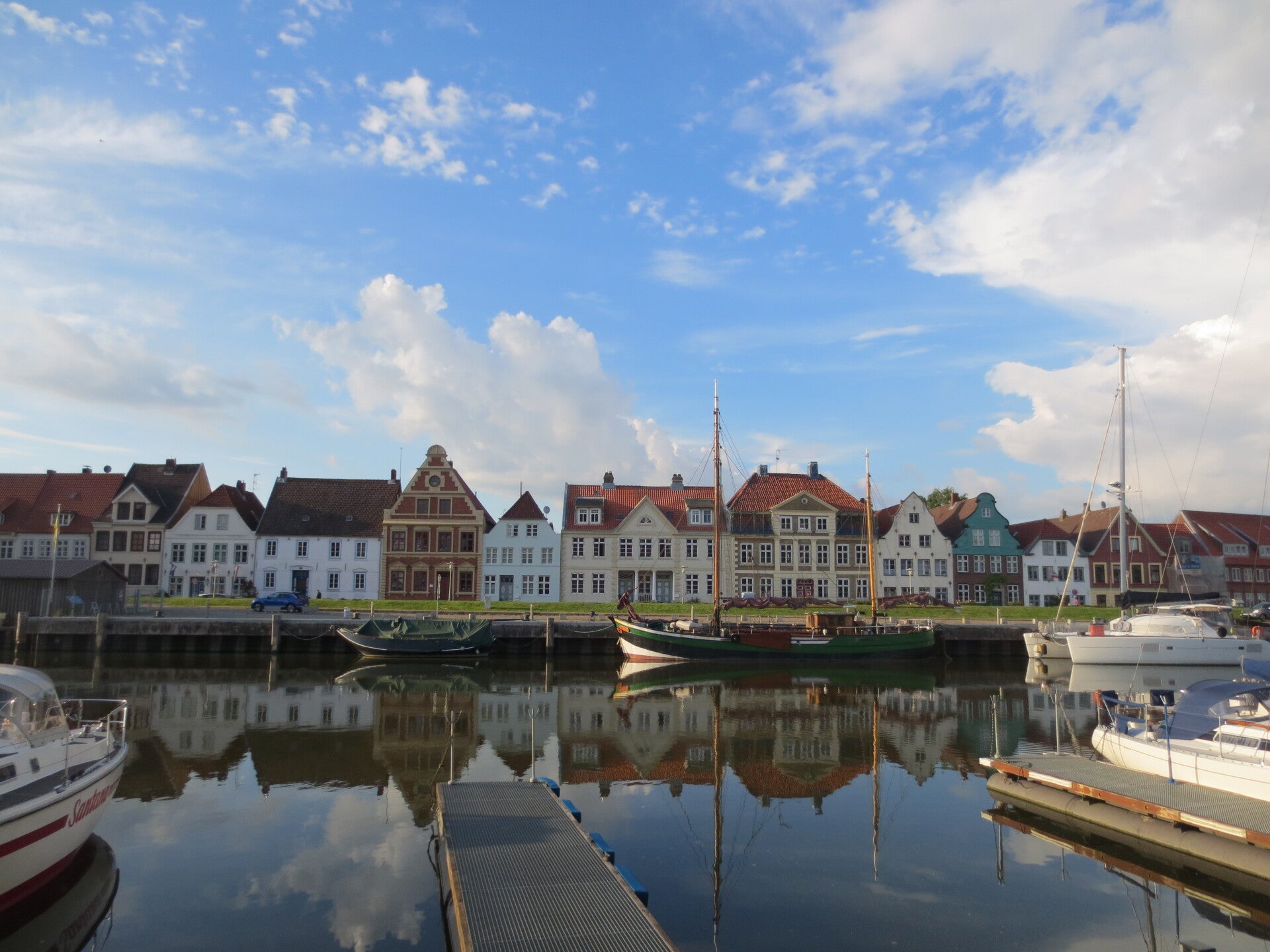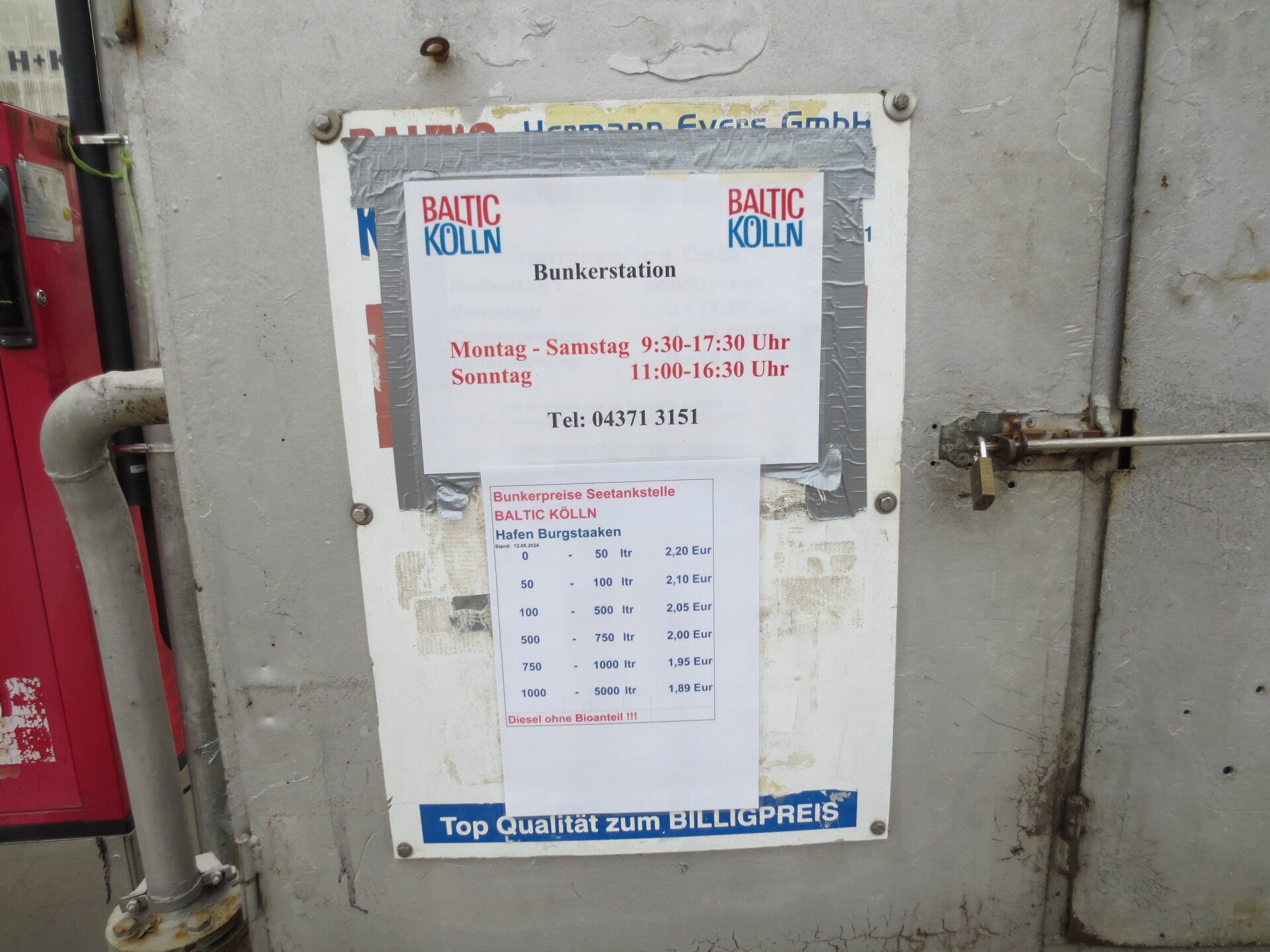Vanmorgen tijdens zon opkomst om 04.45 uur het anker opgehaald en vertrokken. In de vroege ochtend was er weinig wind voorspeld. In Travemünde sliep iedereen nog. Eenmaal op het grote water kwamen er nog een paar grote zeeschepen aan die een loods aan boord kregen. Deze schepen waren de enige veroorzakers van golven verder was de zee zo vlak als een spiegel. Onderweg nog een groep tuimelaars vlak bij ons gezien. Om 11.45 uur aangemeerd bij het tankstation in Burgstaaken op het eiland Fehmarn. Prijs per liter €2,20 onder de 50 liter, €2,10 onder de 100 liter en boven de 100 liter €2,05. Wij hadden op een paar liter na net geen 100 liter dus moesten we de prijs van €2,10 betalen. Hierna hebben we aangelegd in de haven van Burgstaaken. De fietsen uitgepakt en naar het mooie stadje Burg Auf Fehmarn gereden/ gelopen. Fietsen met onze 24” wielen was bijna niet mogelijk vanwege de kinderkopjes. Bij de super nog wat inkopen gedaan. Bij het betalen van het havengeld zei de havenmeester in het Duits zijn jullie die Hollanders? Onze NL vlag was gespot.