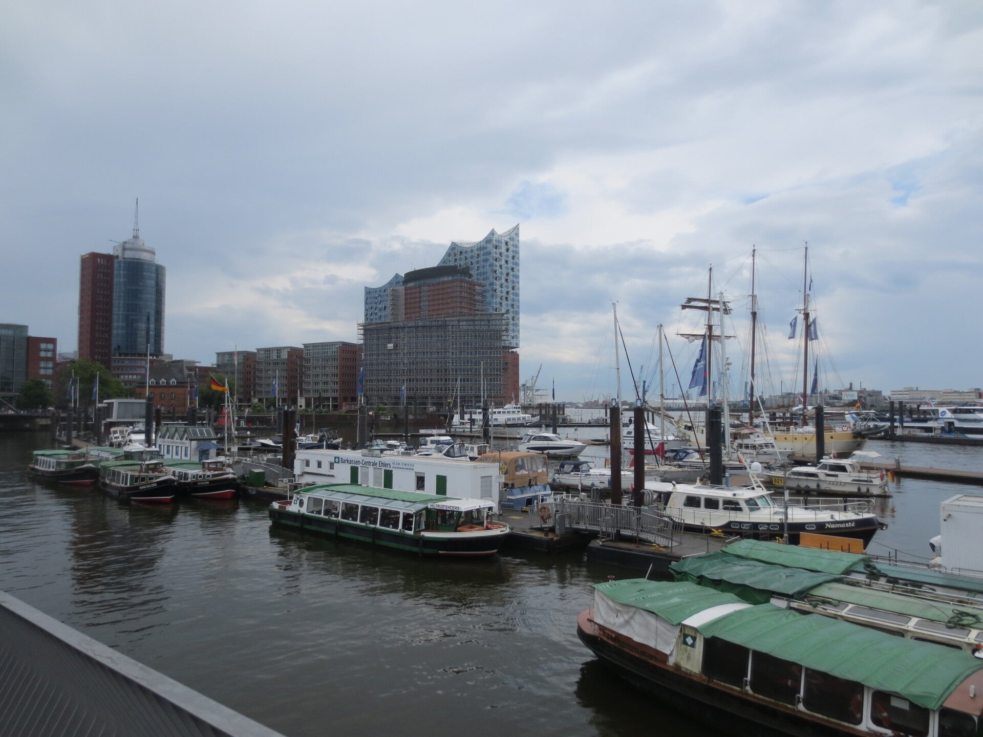 In de vroege ochtend naar de bakker. Om 08.30 uur vertrokken bij Laag Water. Het eerste gedeelte rustig water. Eenmaal in Hamburg begonnen de golven van de watertaxi’s en veerboten. Onderweg streek er een enorme grote vogel neer op een boomstronk. Nog geprobeerd om een foto te maken. Aangemeerd in de City sporthaven. Na een onweersbui een wandeling door de stad gemaakt en nog even de uitkijk op het Elbphilharmonie bezocht.
