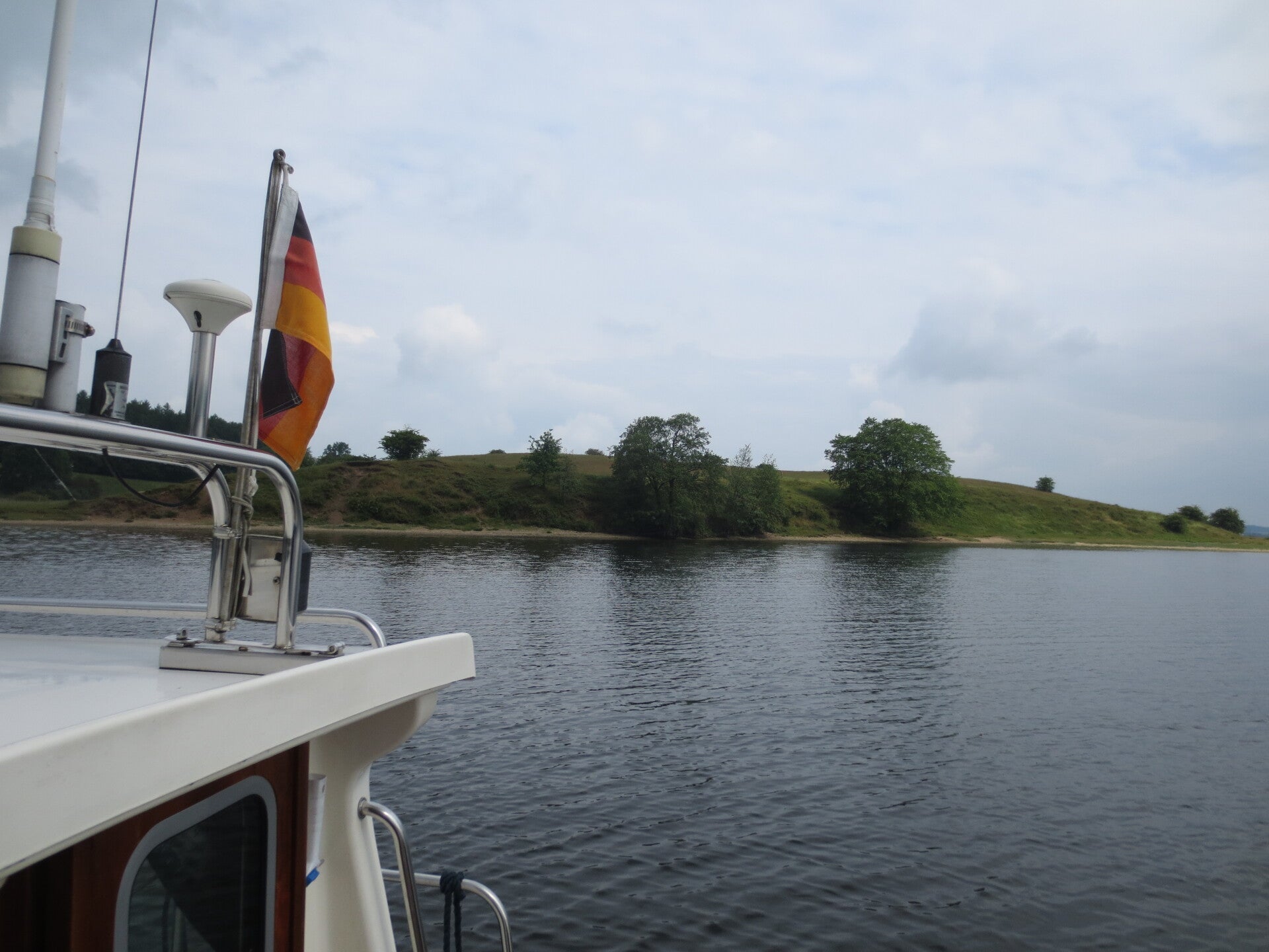 08.45 uur vertrokken en door sluis Dörverden (4,6m ↓ ). Samen met een jachtje uit Bruinisse door de sluis. Na de sluis de oude Weser arm opgevaren richting dam en voor anker gegaan. Rondje boot zwemmen was niet mogelijk i.v.m. de stroming. Dus een lijn achter de boot om aan vast te kunnen pakken.