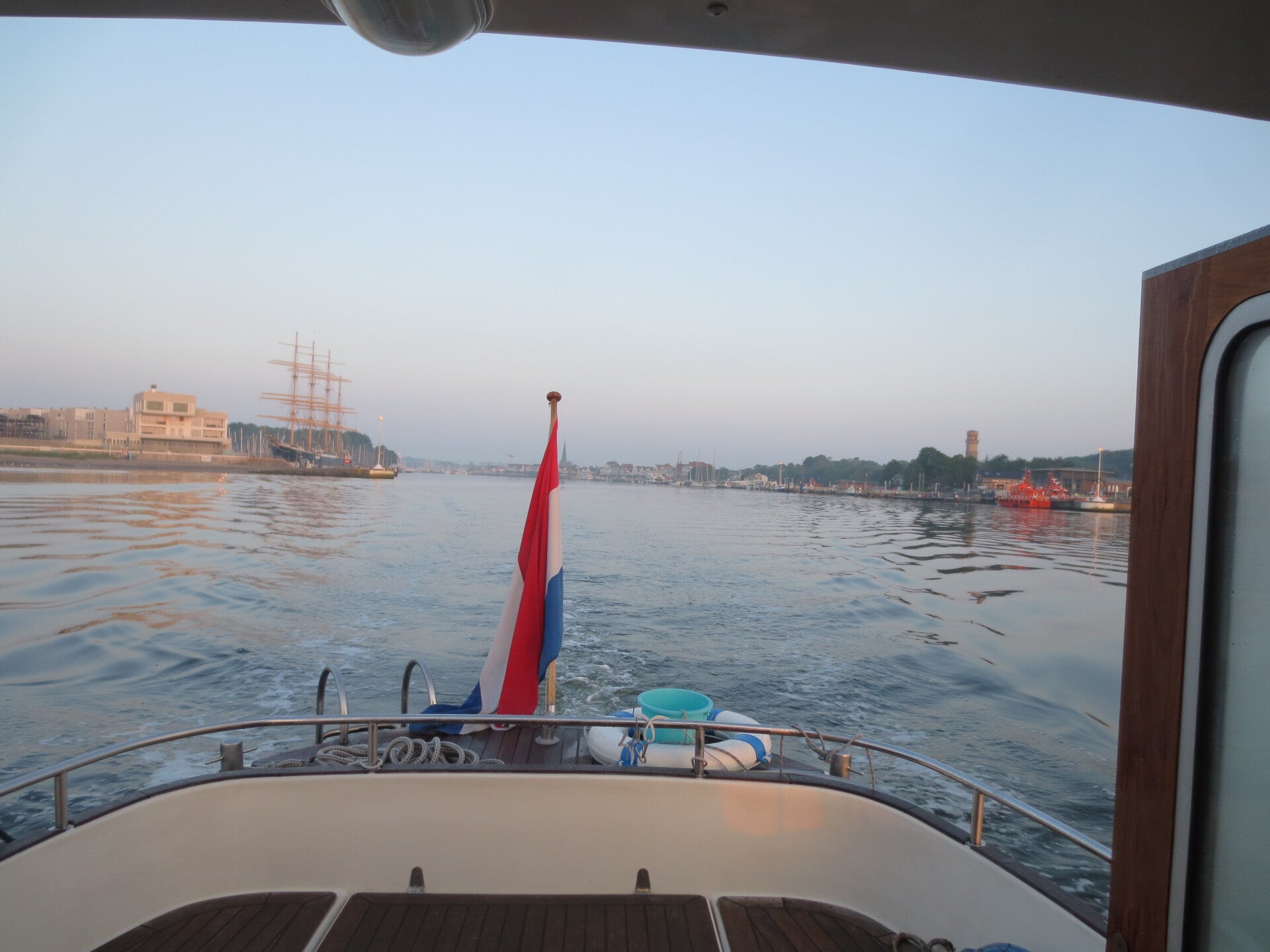 Om 06.00 vertrokken richting Delfzijl. In de zeesluis in Delfzijl kregen we controle van de douane. We waren 1,5 uur na Laagwater door de sluis. Op de Dollard hadden we wind (O4) tegen stroom (7km/uur). Hierdoor hadden we behoorlijke golven.