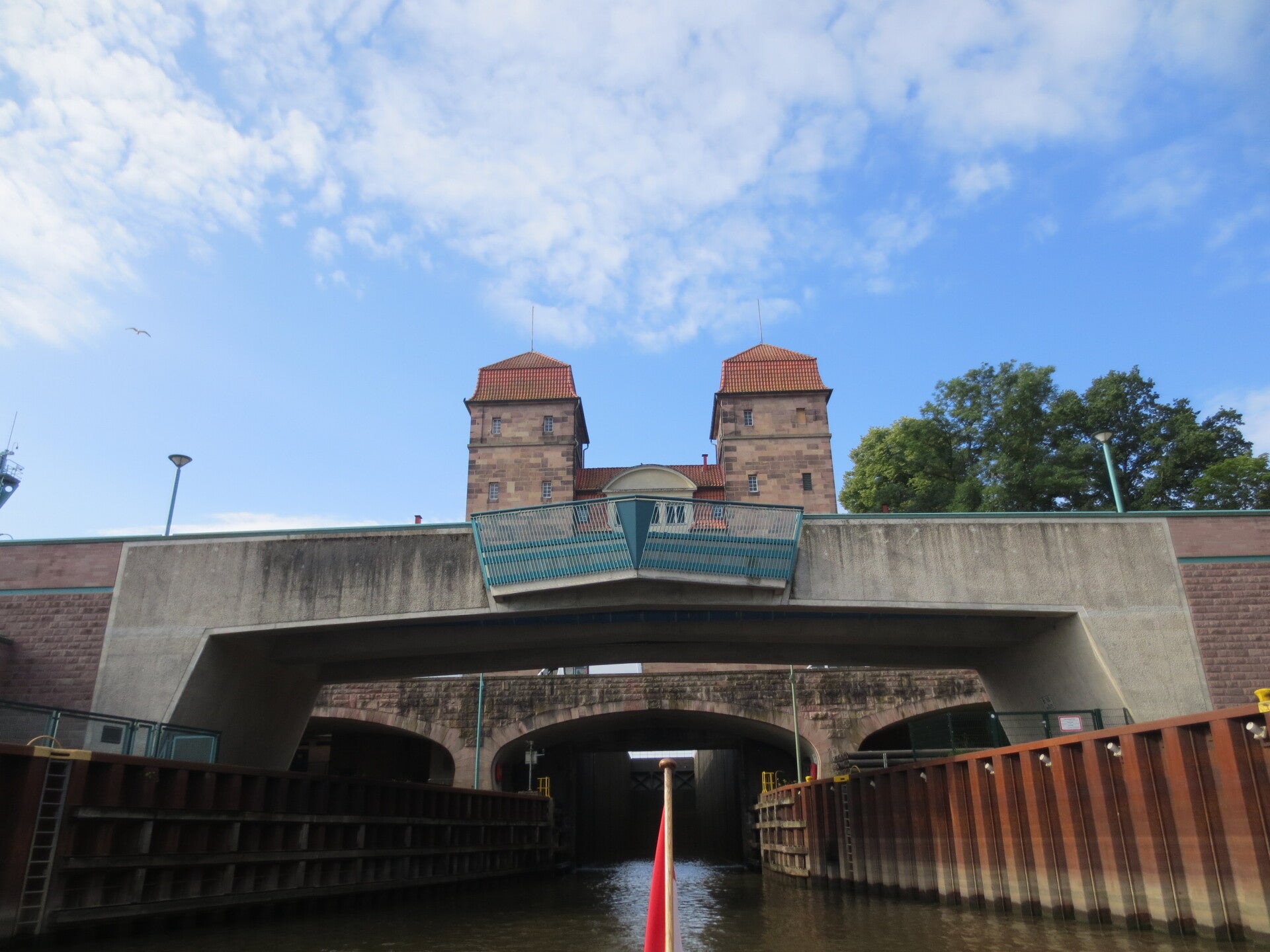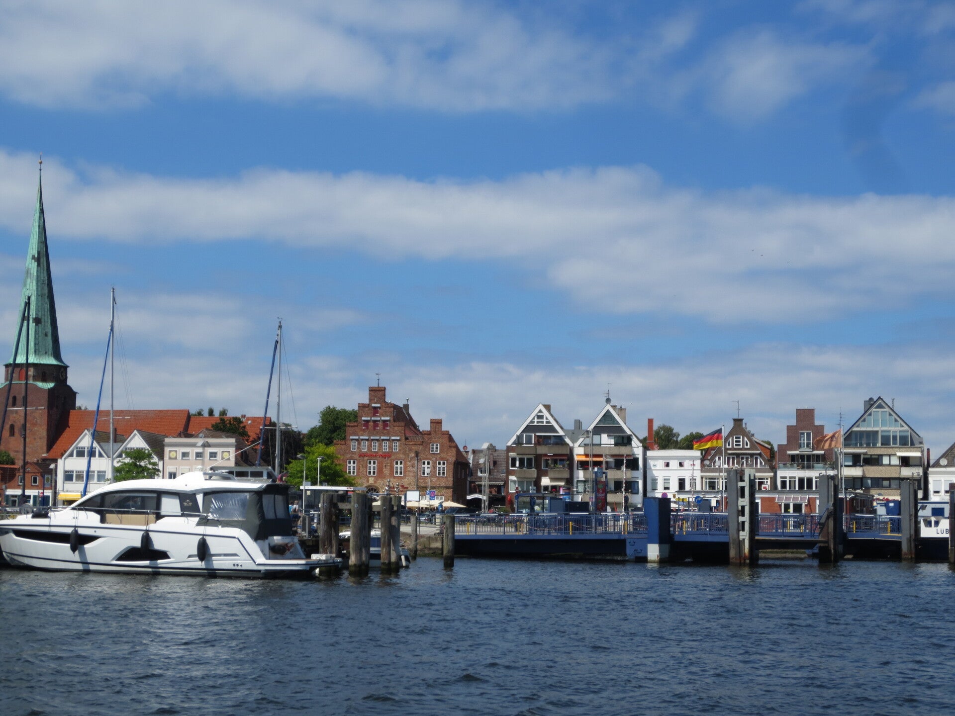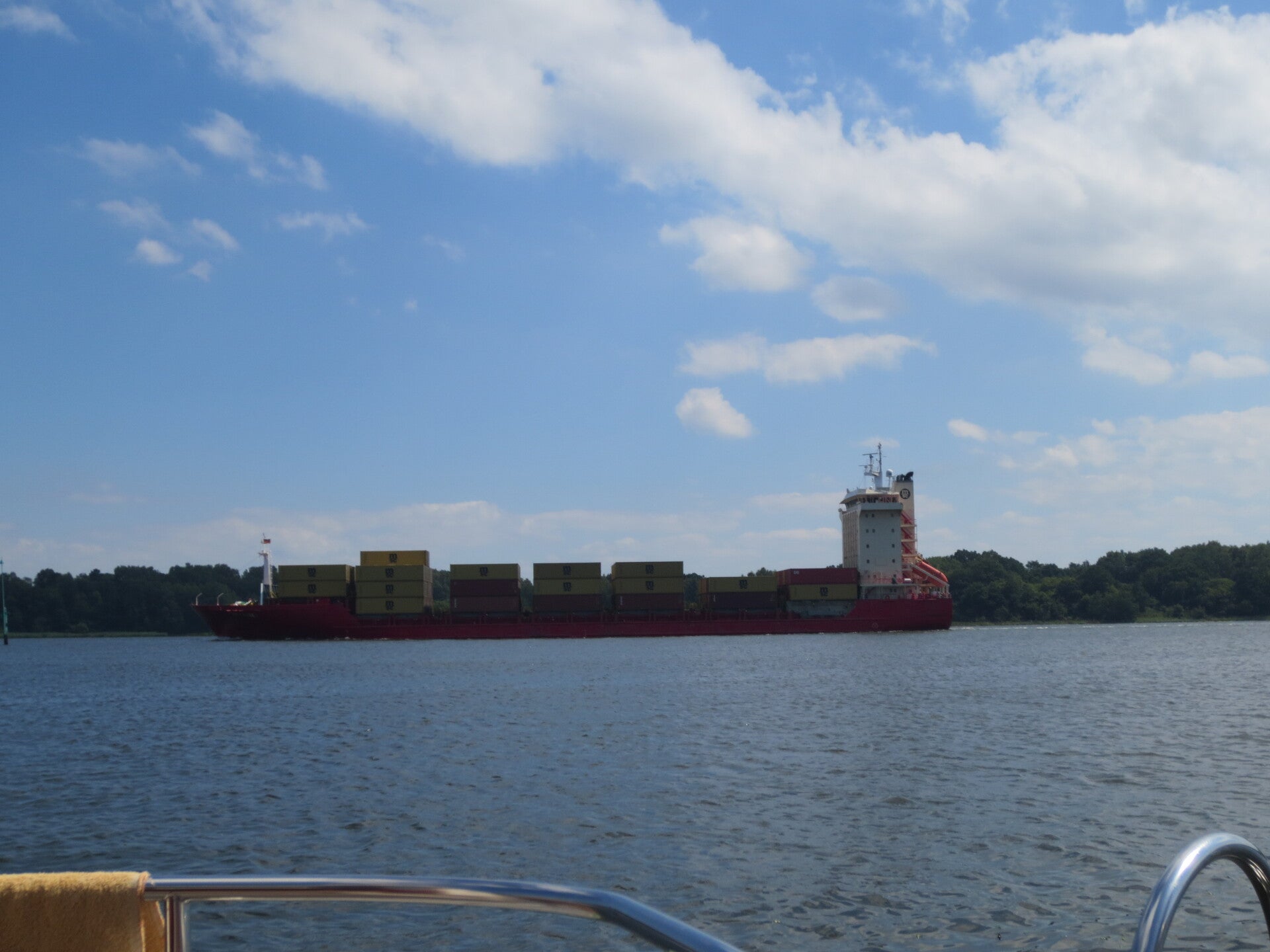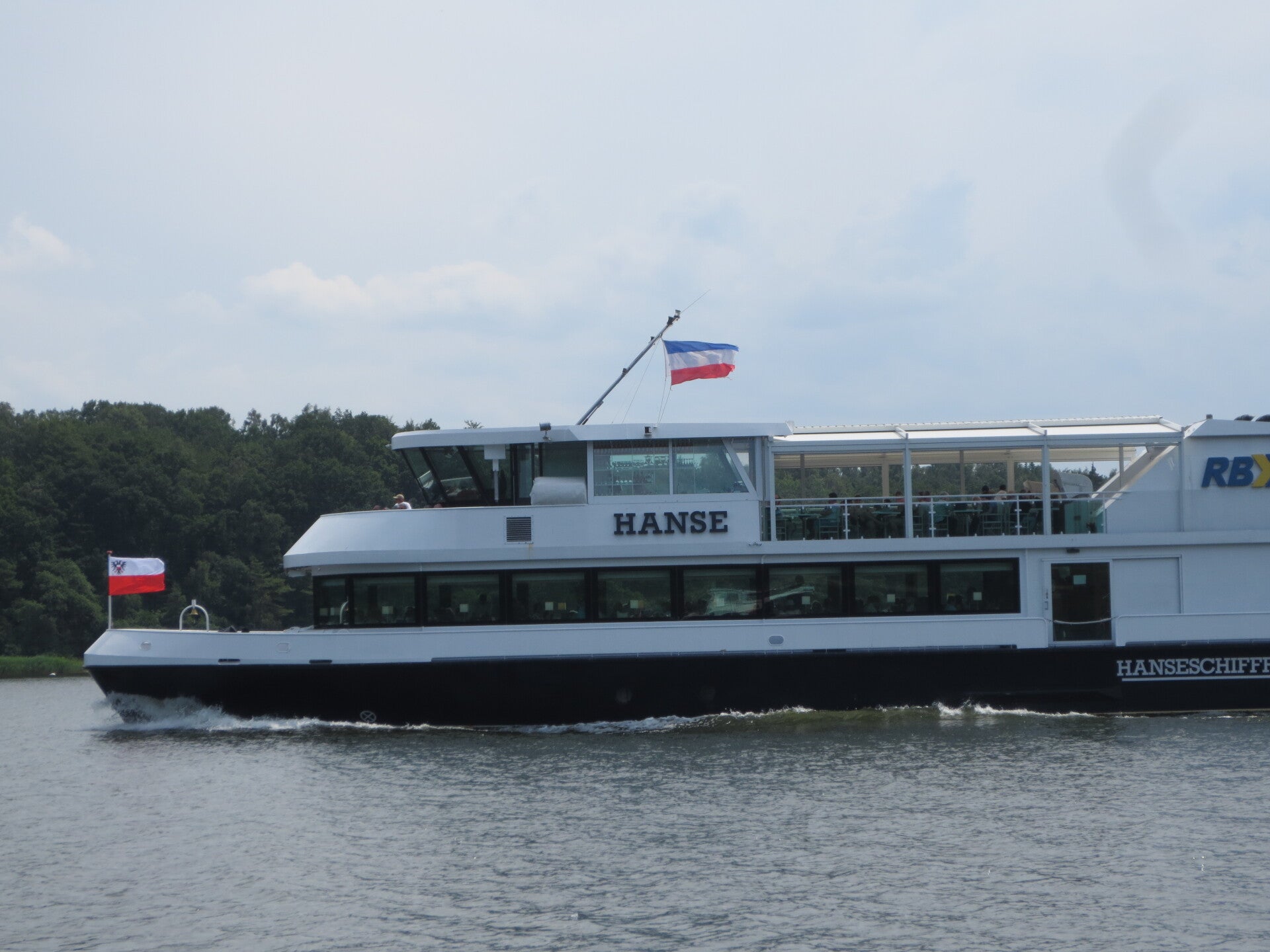 In de ochtend was er een vissersbootje die de paling netten leeg maakte. Ik als leek moet zeggen dat hij veel en grote paling had gevangen. De speciekuipen had hij snel vol. Lekker rondjes boot gezwommen en ook het logwieltje ontdaan van schelpjes. Om 13.30 uur zijn we vertrokken richting Lübeck omdat de weers vooruitzichten onweer voorspelden. Onderweg kwamen we een rondvaartboot tegen met Caroline van der Plas en haar boeren. Net voor Lübeck begon het hard te waaien. Toch nog droog kunnen aanmeren in “Lanchwehr Wasserfahrer Lübeck e.v”. Leuke haven met vriendelijke mensen.