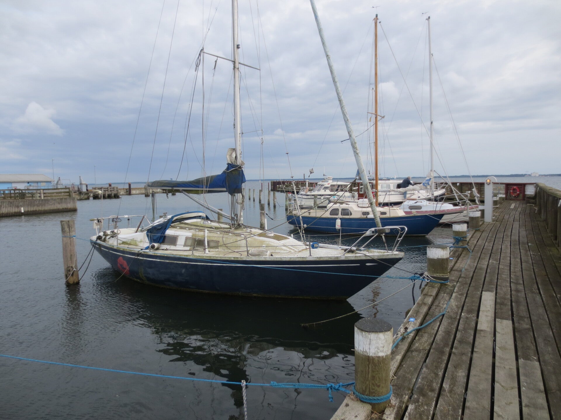 Vertrokken met de wind in de rug en stroom mee. Een mooie vaartocht door de Sund. Aangemeerd net voor de brug in Guldborg. Een mooie haven waar ook nog vissersboten liggen.