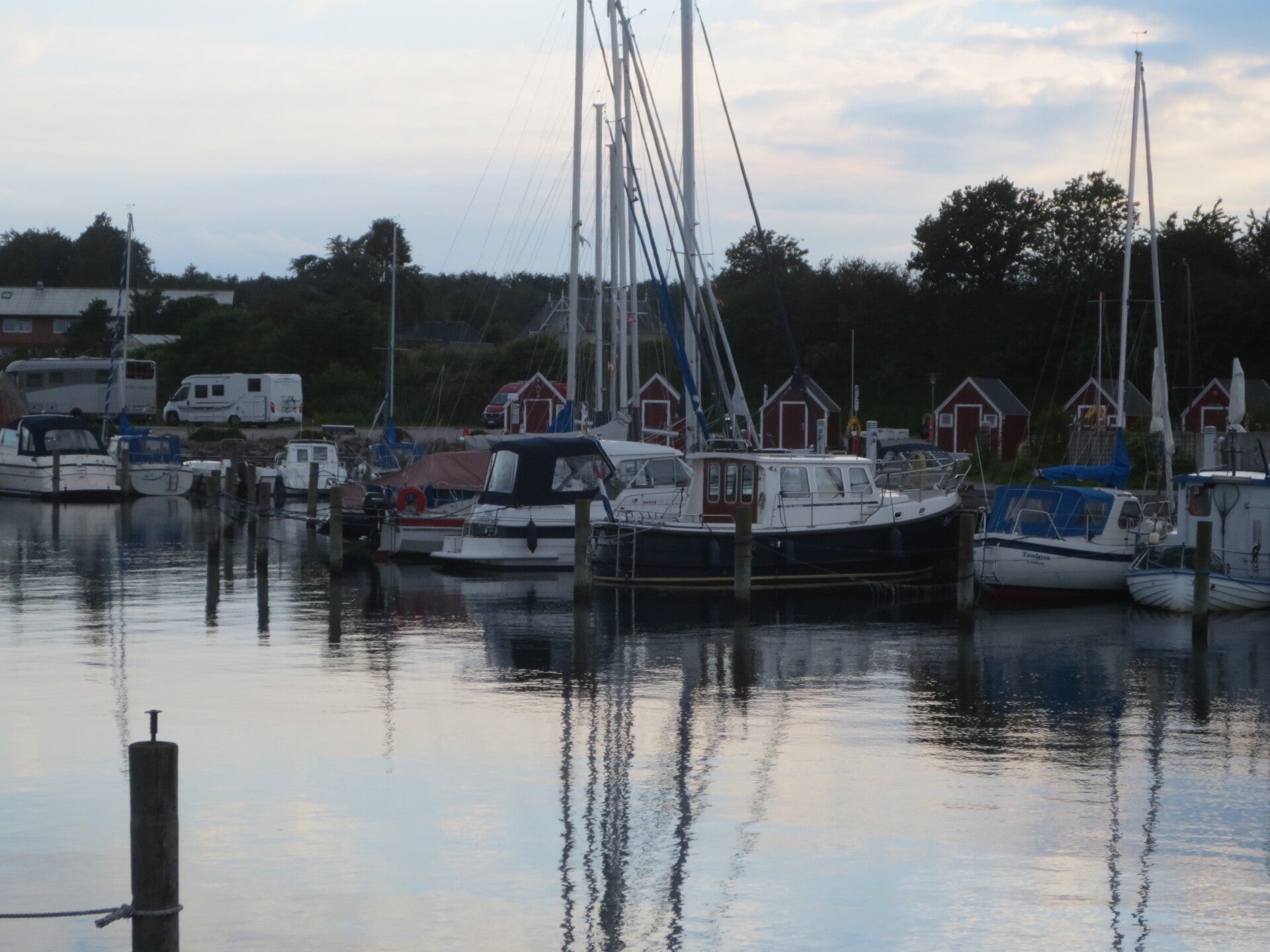 Prachtig rustig weer vandaag. Gevaren naar het eiland Avernakø via de Svenborg Sund. In deze haven waren we nog niet eerder geweest. Een gedeelte van de haven is gerepareerd na de storm Babet van afgelopen oktober. Toen we aankwamen lagen er 3 boten. We hebben de fietsen uitgepakt en een gedeelte van het eiland rondgefietst. Ik kreeg onderweg nog een lekke band die we terplekke hebben geplakt. Een Deens echtpaar vroeg of ze ons konden helpen. De man had een werkplaats thuis om de band te plakken. Maar inmiddels hadden we de band net voorzien van een plakkertje. Er zat een stukje vuursteen in de band. Hierna hebben we onze tocht voortgezet. Bij terugkomst lag de haven voor een groot deel vol. Onze directe buren hadden denk ik niets met motorboten er kon geen goede dag vanaf. We hadden wel een band met een Deen die ook met een motorboot was.