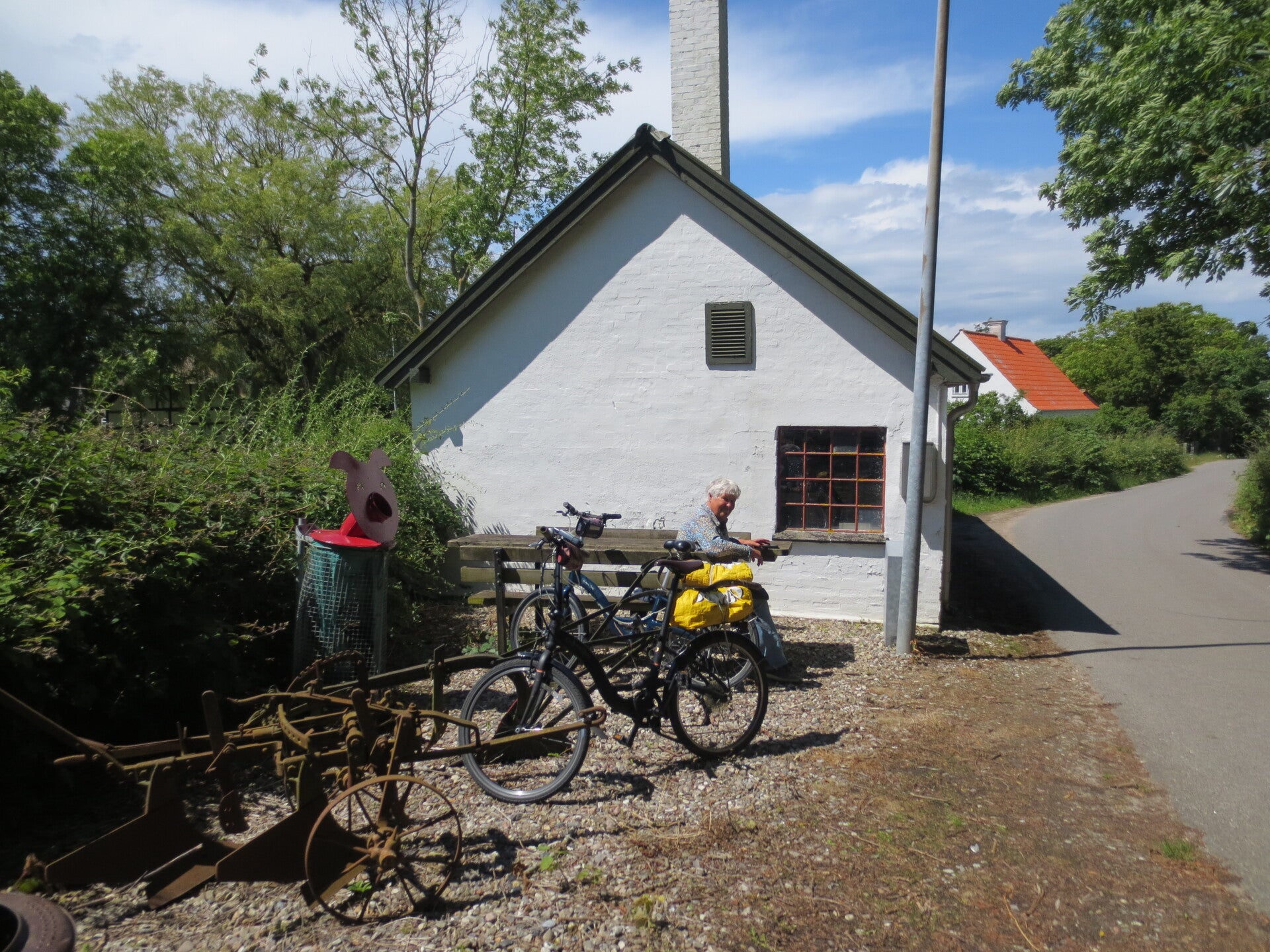 Vandaag op de fiets over het eiland Avernakø via een dijkje naar het oostelijkste puntje van het eiland Korshavn gefietst. Meerdere keren moesten we de helling van de heuvels oplopen. Mooie fietstocht over het eiland. Op het oostelijke puntje was een prachtig strandje waar we heerlijk op een bankje hebben gezeten. Nog heel gesprek gehad met 3 Deense dames die hier op het eiland een wandel vakantie hielden.