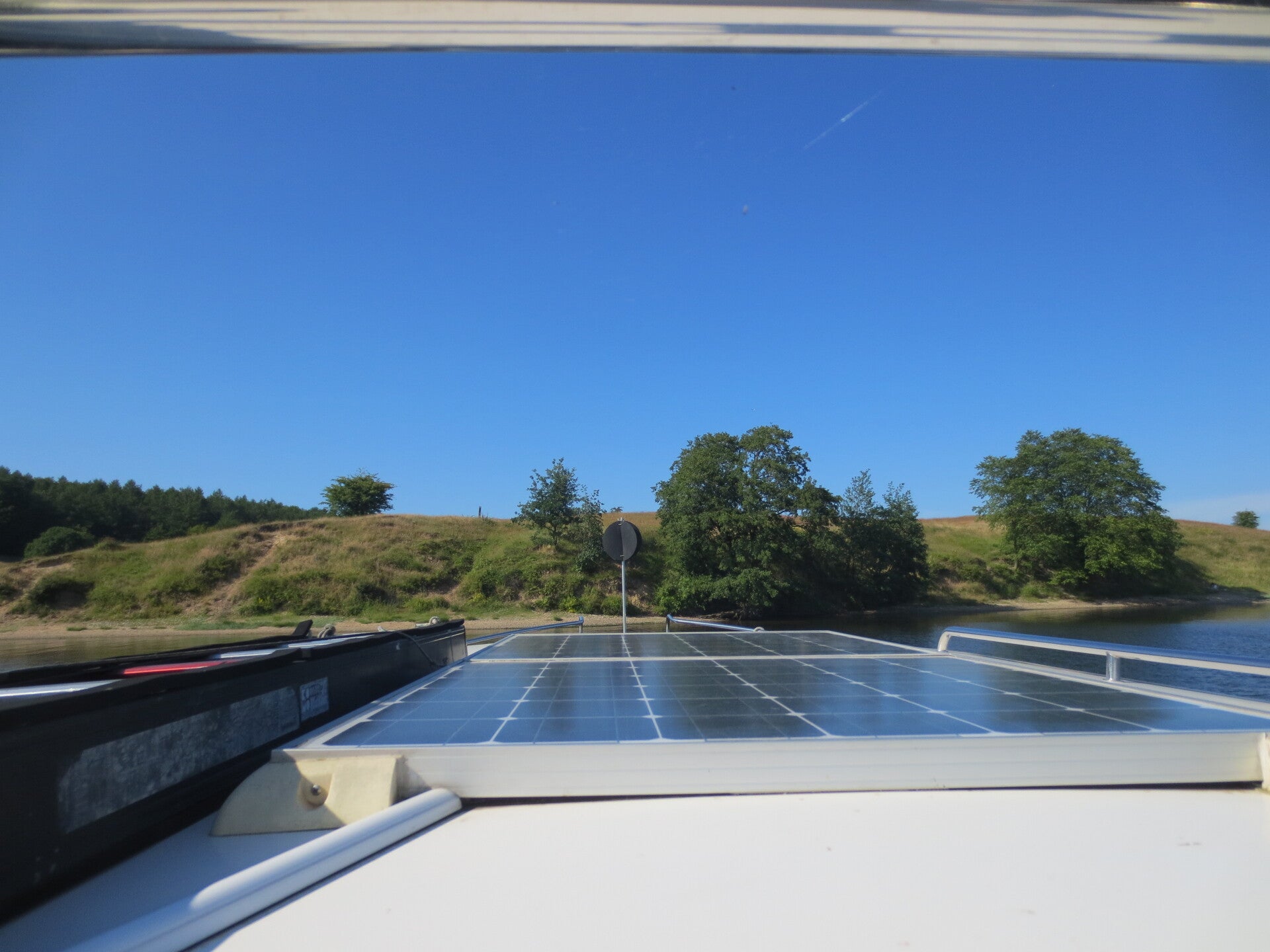 Er wordt goed geoefend in Duitsland met artillerie. De zware dreunen gaan de hele morgen door. Het oefen gebied ligt op zo’n 60 km afstand. Later in de dag naar de Pötenitzer Wiek gevaren ivm de draaiing en de kracht aankomende nacht van de wind. Dit is een groot meer ten oosten van Travemünde. Mooi ankerplekje in de beschutting gezocht zodat we morgen als het zeer warm wordt kunnen zwemmen.