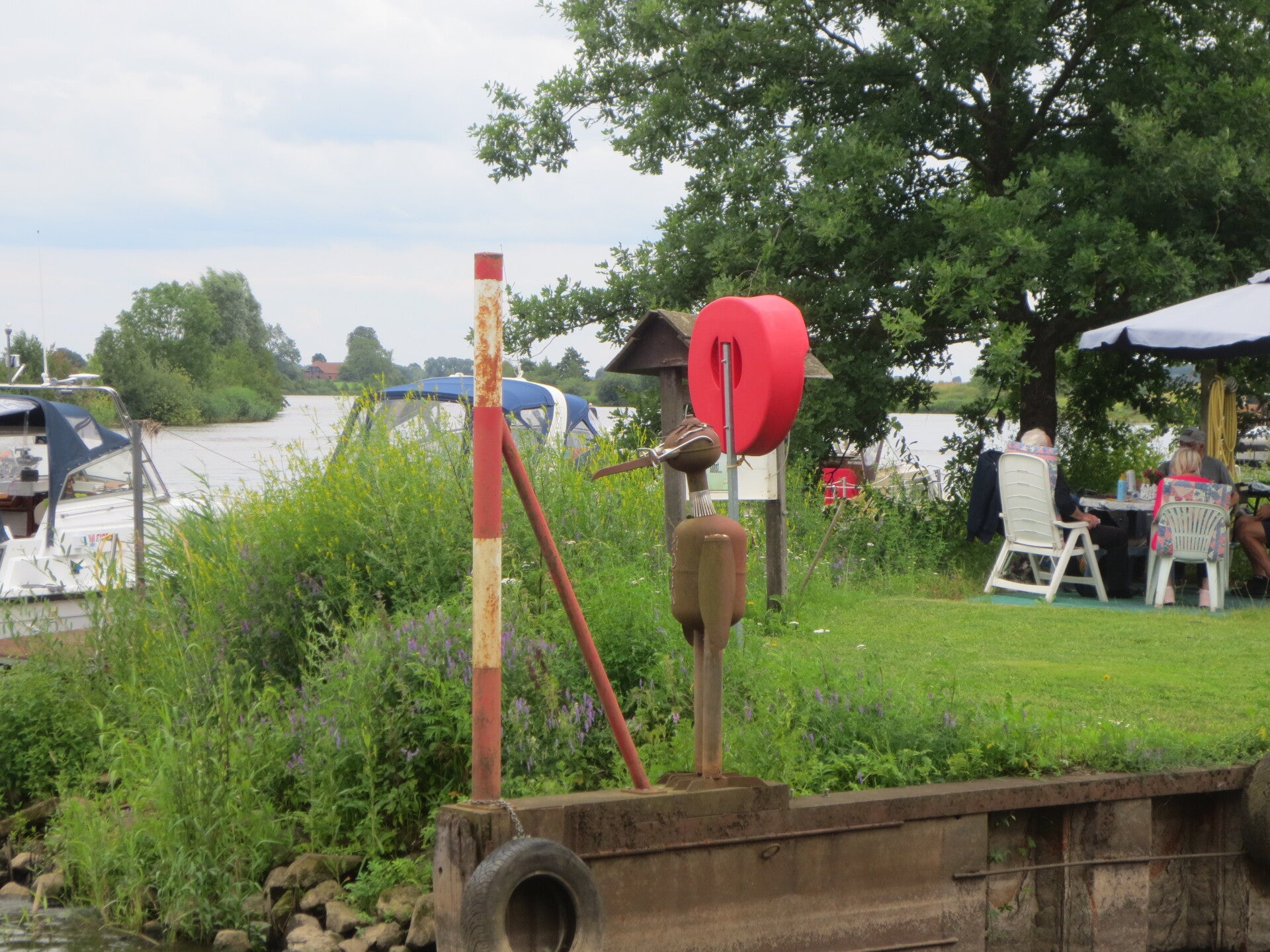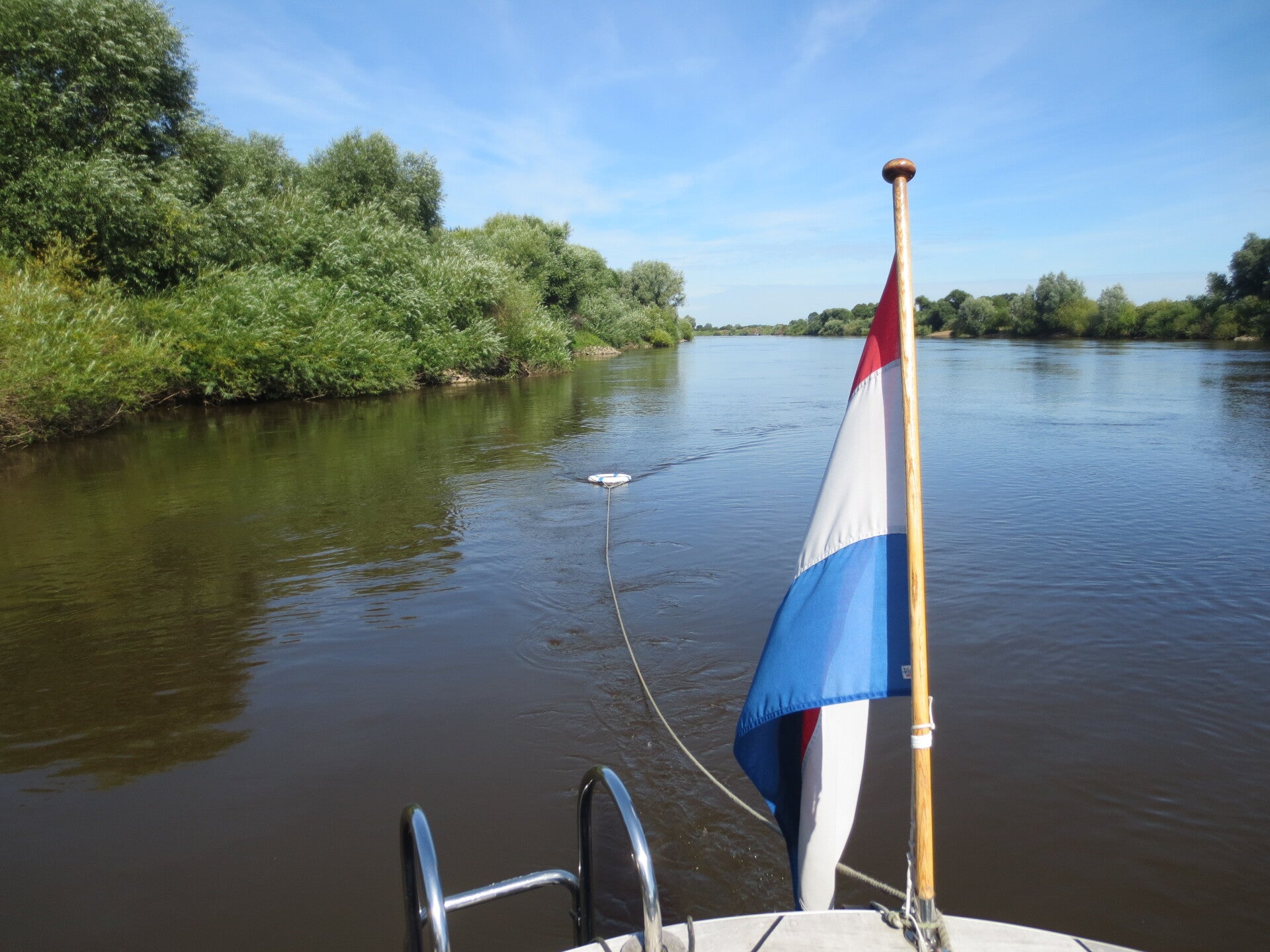 Vetrokken om 09.30 uur. Bij het wegvaren zwom er een ree over het water. Mooi om te zien. Net voor de sluis kwam de zijrivier de Aller uit in de Weser. Hierna was het water in de Weser niet meer zo mooi helder. De Aller stroomde hard en bracht bruin water met zich mee. Alleen door sluis Langwedel (5,5 m ↓). De sluiswachter sprak perfect Engels. Hierna zijn we de oude rivier arm ingevaren naar een mooi ankerplekje. Rond om ons heen mooie zandstrandjes. Er staat een behoorlijke stroming van 4 km/uur. Het water is ook een stuk kouder dan ons vorige ankerplekje. We blijven hier een paar dagen omdat het warm en zonnig wordt. De schroef vastgezet met een stuk plakband. Deze bleef draaien in de stroming.