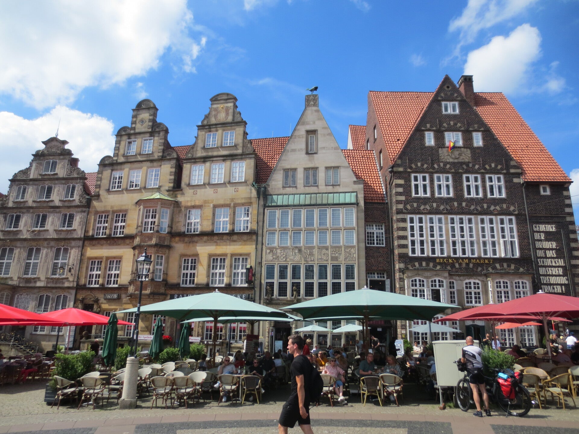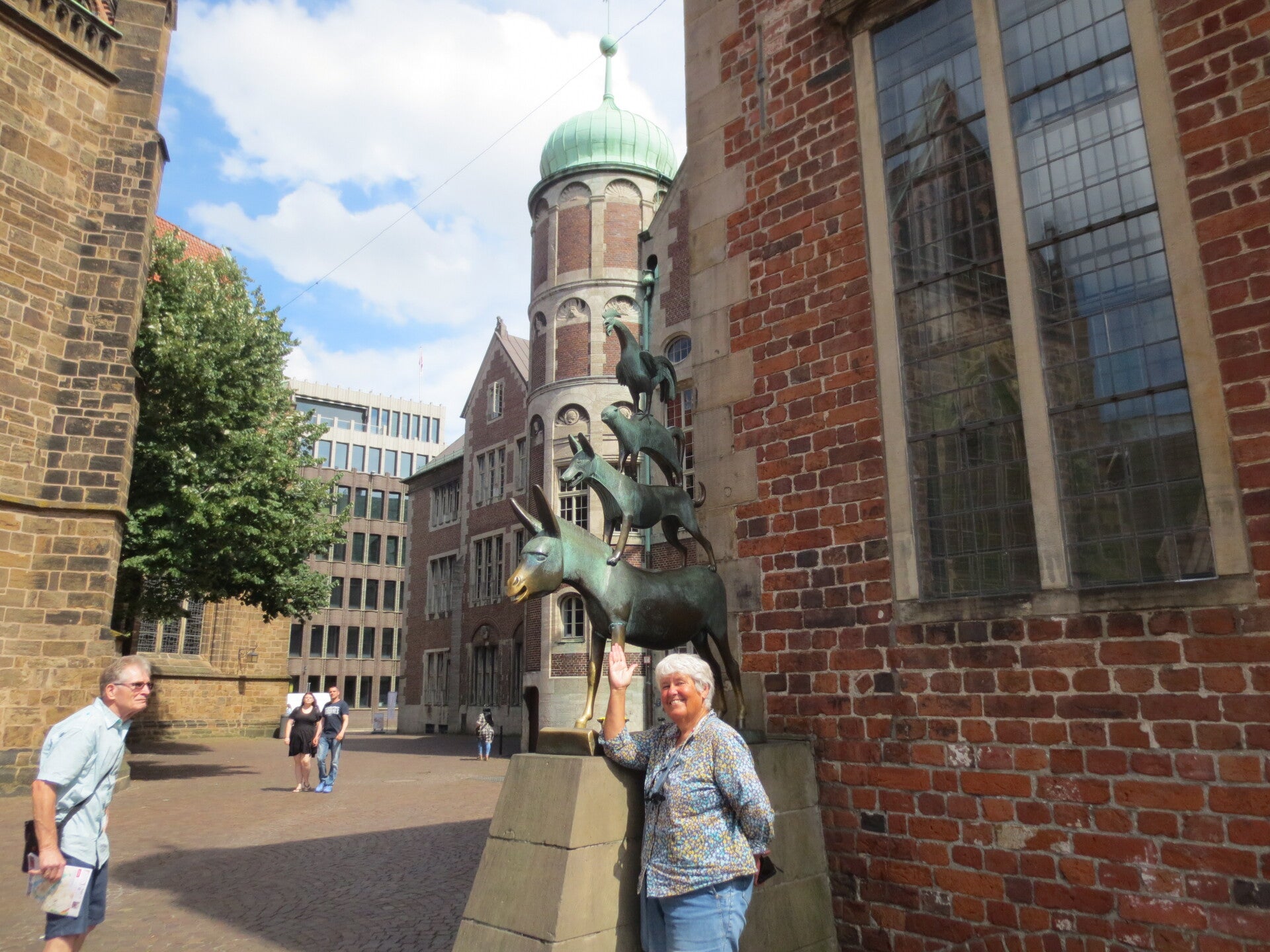 We hadden de stroom goed mee. De spotboot zelf bedienings sluis was defect. De monteur kwam ons vertellen dat het even kon duren. Uiteindelijk bleek er 1 van de 3 signaal lampen kapot te zijn. Na een kwartiertje konden we de sluis weer bedienen. Er was een behoorlijk verschil doordat het eb was. Aangemeerd in de Marina Landesverband Motorboot Bremen. Deze haven is een mooie lange steiger in de Unter Weser voor het stadscentrum. In de middag een wandeling gemaakt naar het stadscentrum en nog een bezoek gebracht aan de “Stads muziekanten” en “Das Bremer Loch”. Bij de Das Bremer Loch (Wilhelm-Kaizer-Buergerhilfe) een euro muntje in de gleuf gegooid en we kregen de ezel te horen. Hierna nog even naar de Lidl en daarna genieten van het mooie weer in de kuip.