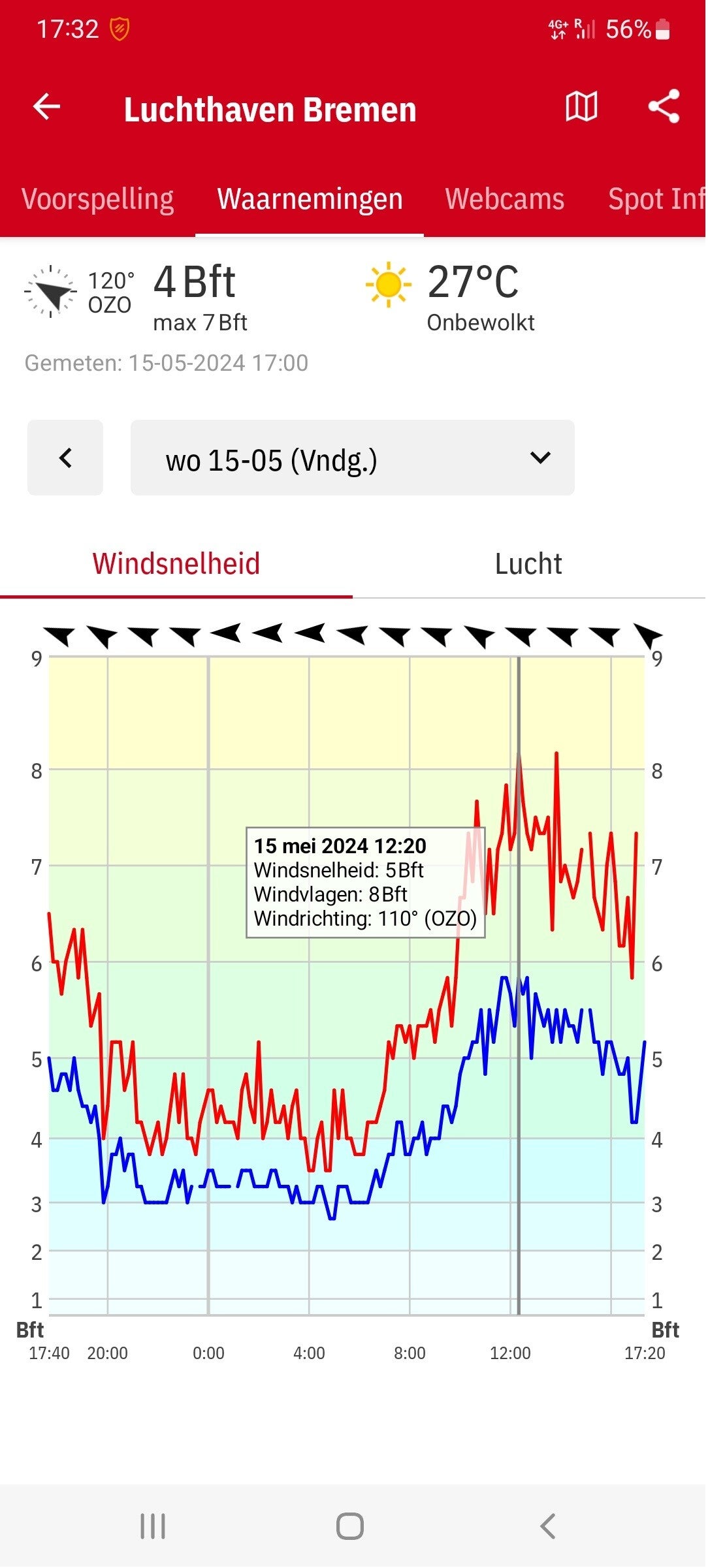 Woensdag 15 Mei. Uren gevaren 2,4 – 28°C–Zon–wind OZO 5 met uitschieters tot 8 Beaufort