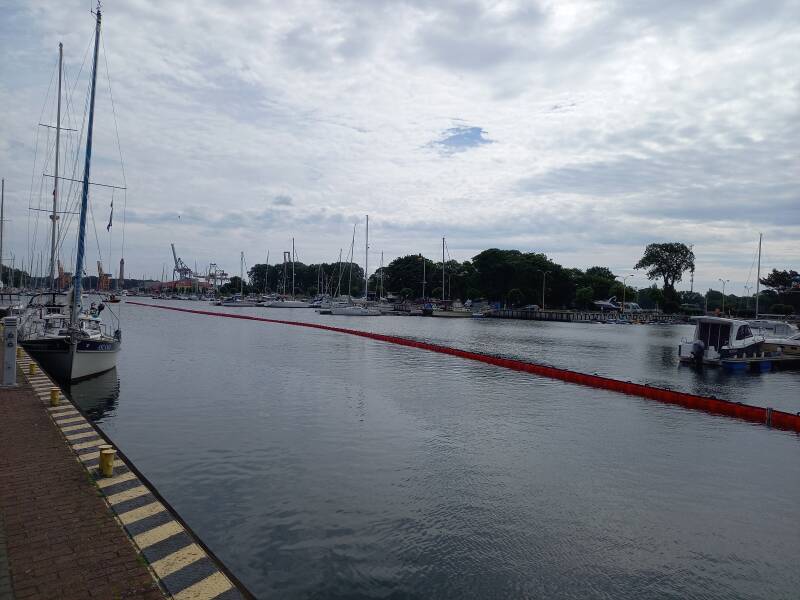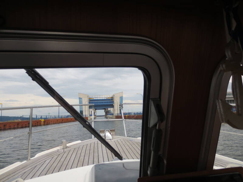 Vanmorgen eerst even gekeken of de verwachte stroming de goede kant op was. De stroming was goed. Om 05.15 uur vertrokken. In het kanaal voer een grote drijvende kraan voor ons uit. Wij zijn er achtergebleven vanwege zijn enorme breedte. We hebben de kraan op het meer gepasseerd. Gevaren naar de haven in Szczecin.