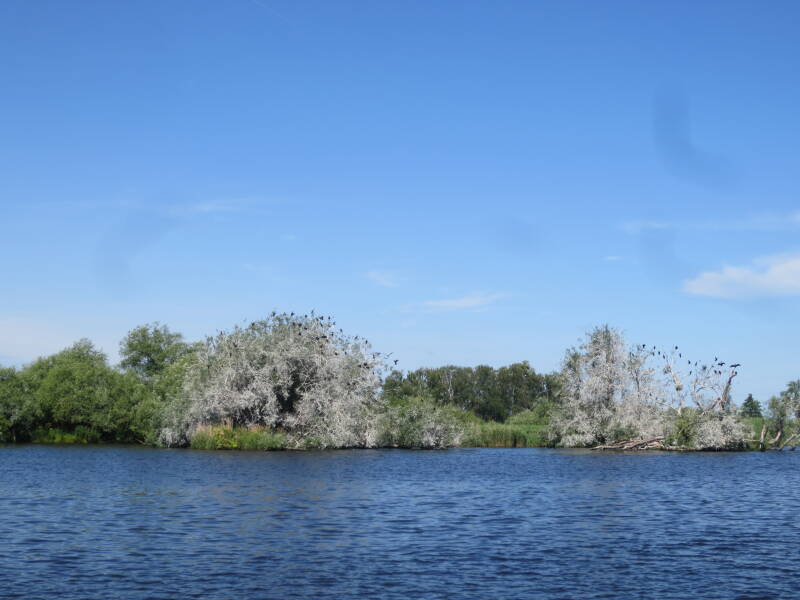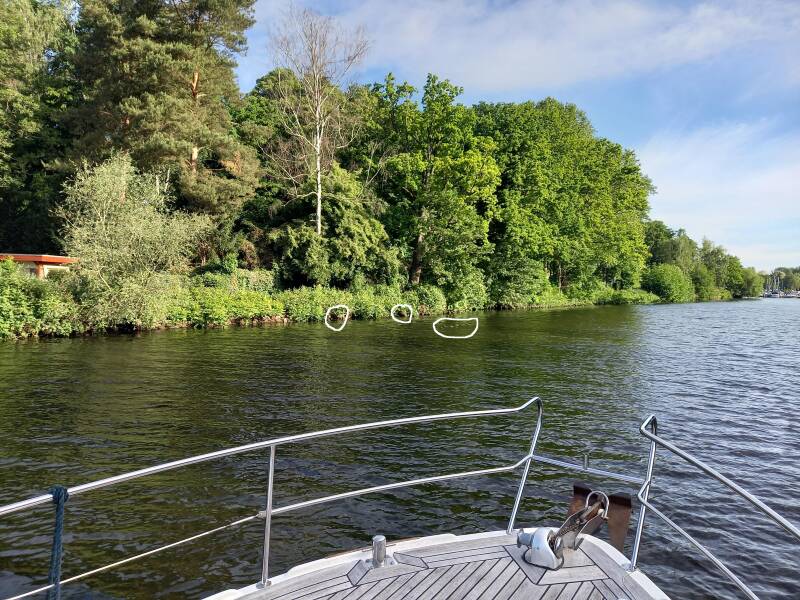 Bij vertrek nog een otter gespot. Die ging er onder water vandoor. Maar omdat het water zo helder is kon ik de otter een heel eind zien. Vandaag ook weer veel bomen in het water waar we omheen moesten varen. Na de Lehnitzschleuse hebben we geankerd in de Lehnitzsee.