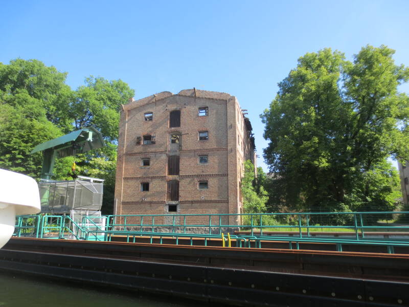 Om 07.30 vertrokken en door sluis Doppelsparschleuse Hohenwarthe 19,5 meter omhoog aan een drijvende bolder. We waren alleen in de sluis. Toen we boven waren stonden daar 2 politie mannen. We dachten dat we controle zouden krijgen maar dit was niet zo. Waarschijnlijk gingen ze de Poolse duwbak combinatie controleren die de sluis inging. Hierna gemeld voor de kanaalbrug over de Elbe en we kregen de melding dat we door mochten. Dit is een redelijke smalle lange water brug over het Elbe dal waarbij er eenrichtingsverkeer is. Deze brug was heenweg droog voor onderhoud en inspectie. Hierdoor moesten we heenweg meerdere sluizen nemen om eerst af te dalen naar de Elbe en daarna weer omhoog. Dit was nu geen optie meer. Er staat minder dan een halve meter water in de Elbe. Onderweg nog boodschappen gedaan in Haldensleben. Aangemeerd aan een mooie steiger. Hierna een flinke wandeling gemaakt en we waren net terug voor een hevige regenbui.