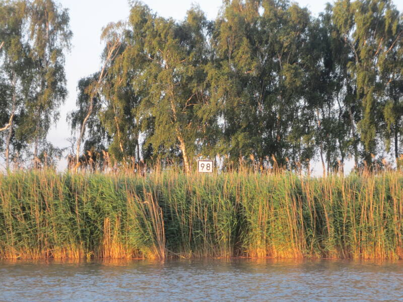 Gevaren naar een mooie ankerplek vlakbij een bever burcht. De bevers lieten zich niet van dichtbij zien. Op een afstand van 100 meter waren ze pas zichtbaar. We hebben ook een otter gespot die een vis aan het eten was en ook een rode wouw die hoog in de lucht boven ons bleef cirkelen. De rivier de Peene en een strook land naast de rivier aan beide zijden zijn een natuurgebied. De strook naast de rivier bestaat uit riet en moerasbossen. Het water is heerlijk zwembaar. Enigste wat een nadeel is dat je met een natte huid aantrekkelijk bent voor steekvliegen.