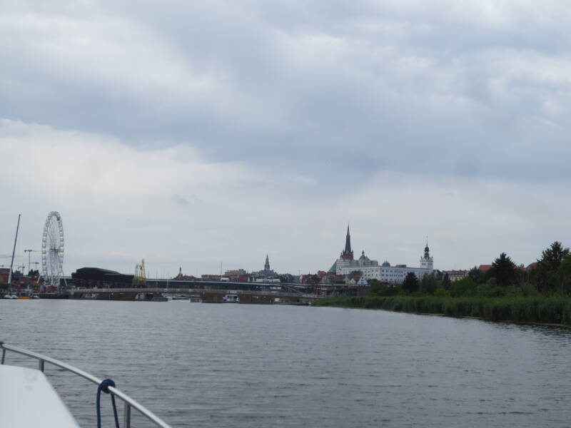 Gisteravond kwam de havenmeester nog om 20.30 uur langs. Haven geld was €9,00. Vanmorgen om 08.45 uur vertrokken en de Oder verder afgevaren door een onbewoond gebied. De rivier is wel 200 meter breed en 10 meter diep. Onderweg het Duitse gastenvlaggetje omgeruild voor het Poolse vlaggetje. Aangemeerd in Szczecin in de North East Marina dat naast het amusementspark ligt. Hier staat een reuzenrad en er werd gedanst in Poolse klederdracht door kinderen. Aan de 2 gastensteiger lagen 6 boten terwijl er plaats is voor 15 boten. Een klein stukje lopen over de brug ben je in de mooie oude binnenstad met imposante gebouwen. In de namiddag nog een flinke onweersbui met windstoten.