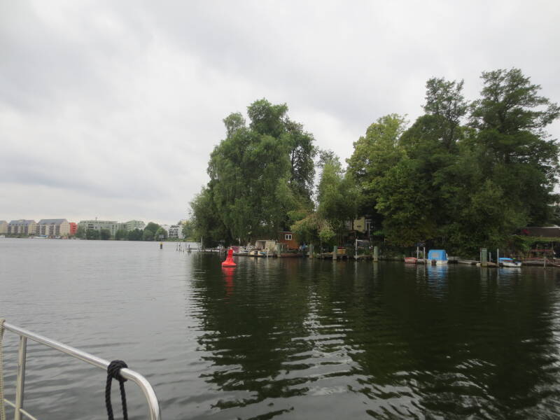 Om 06.45 uur vertrokken. Gisteren kwam er ook een watersporter aan met een kajak en een hond. De kajak was tot de rand toe volgeladen. Het was een wonder dat deze nog bleef drijven. Ze overnachtten in een klein tentje aan de oever. Onderweg passeerden we één sluis. Daar kwamen we opnieuw de twee Nederlandse boten tegen, de Jutter en de Saffier. De vaartocht voerde ons door een prachtig gebied en was zeer de moeite waard. Uiteindelijk meerden we aan in Spandau, bij de Spandauer Yacht Club. Hier waren we in 2019 ook al eens geweest tijdens ons bezoek aan Berlijn.