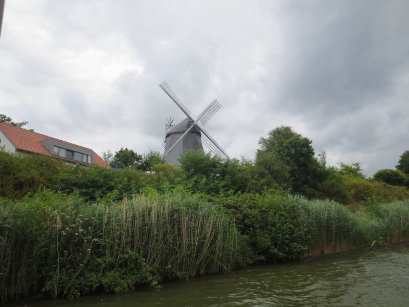 In de middag van onze warme mooie ankerplekje naar het plaatsje Loitz gevaren. Aangemeerd in het haventje. Een flinke wandeling gemaakt door en langs het plaatsje.